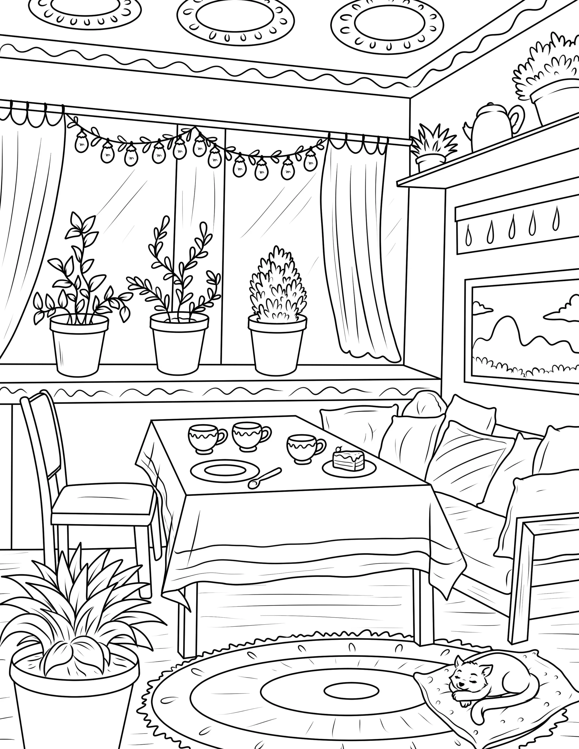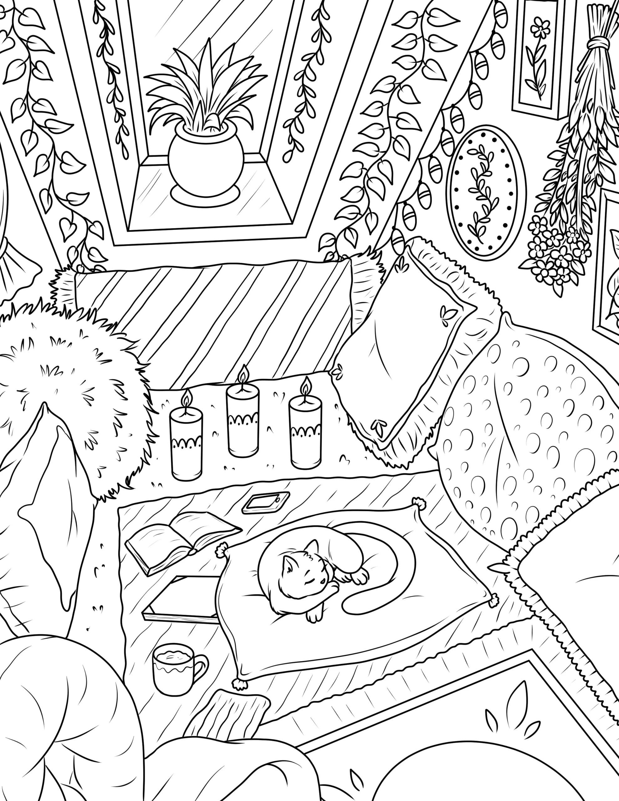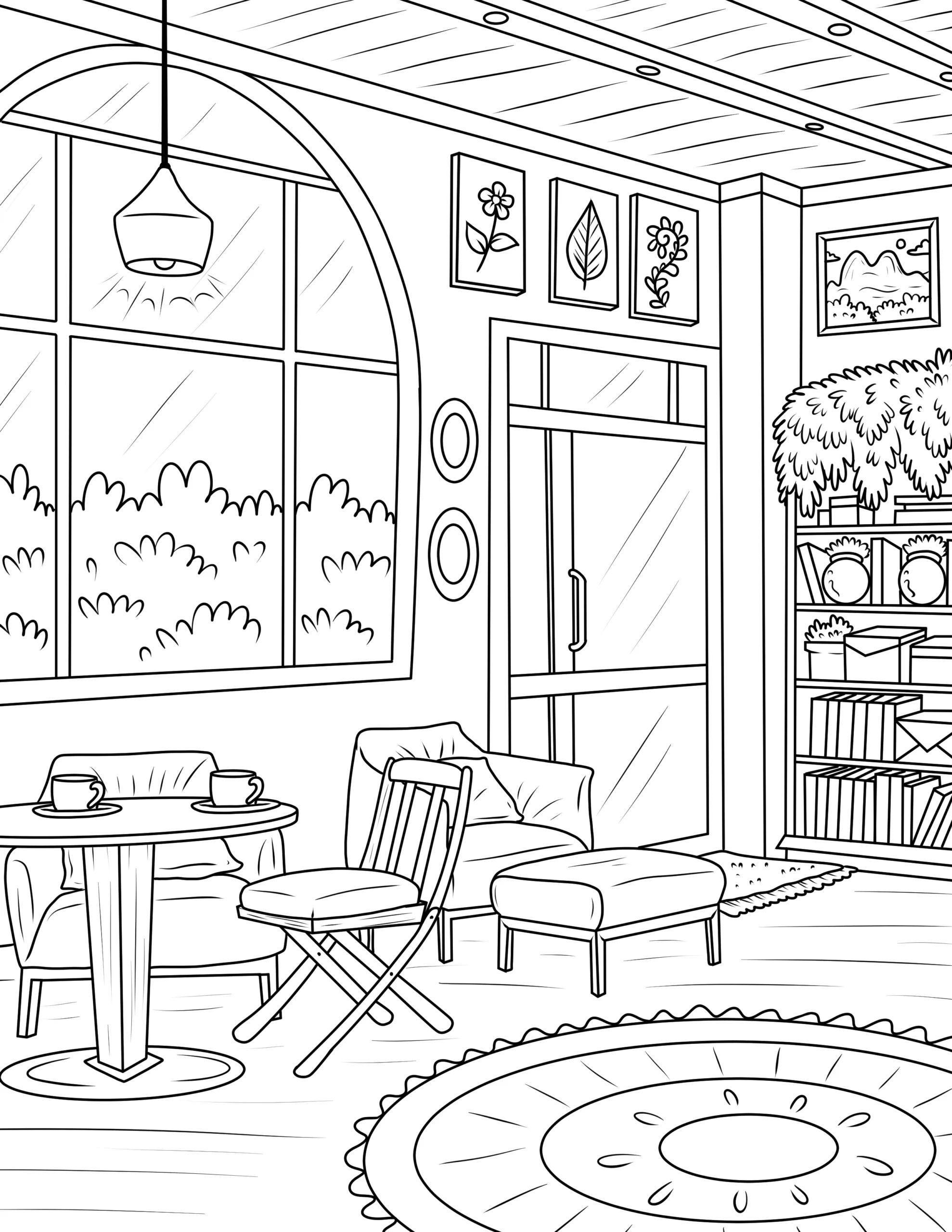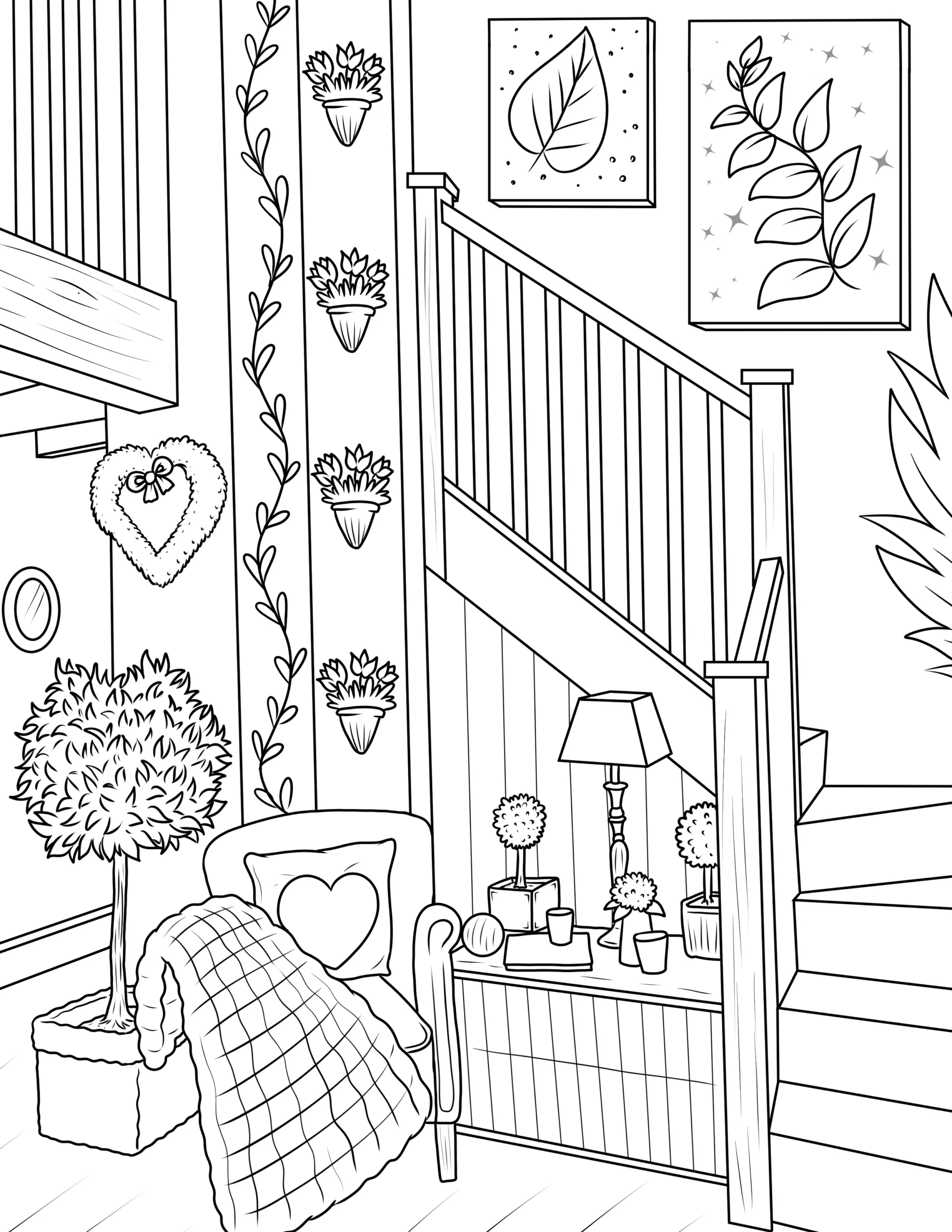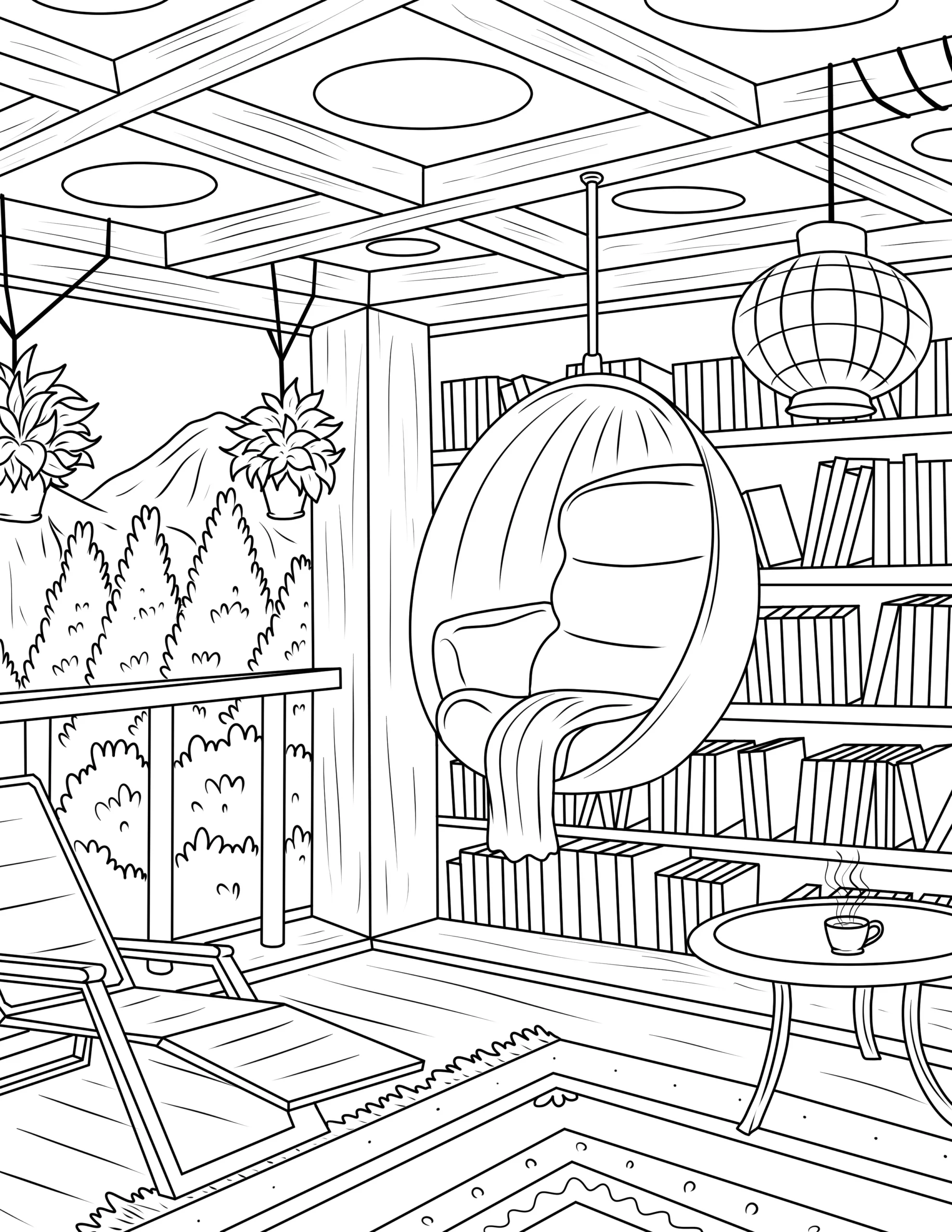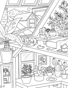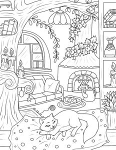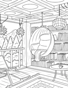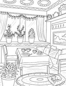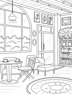 Free Cozy Spaces Coloring Pages – Printable Relaxing Room Designs