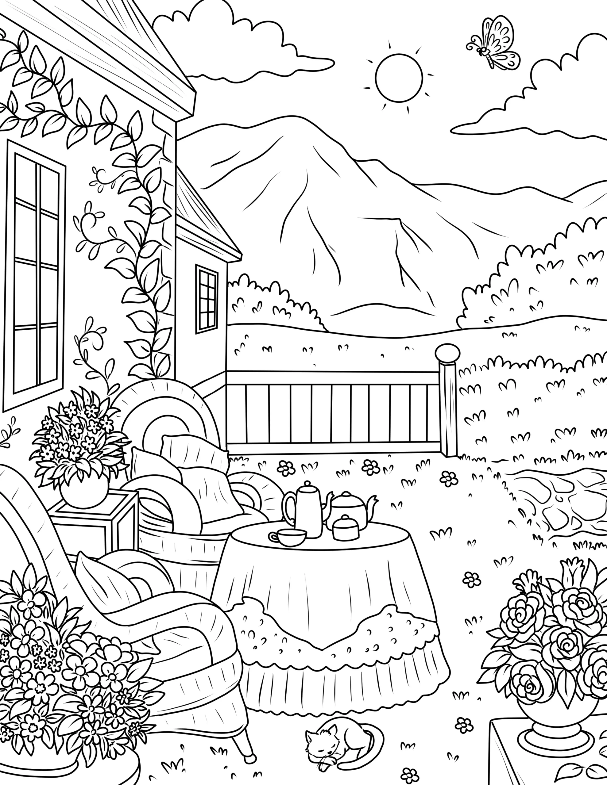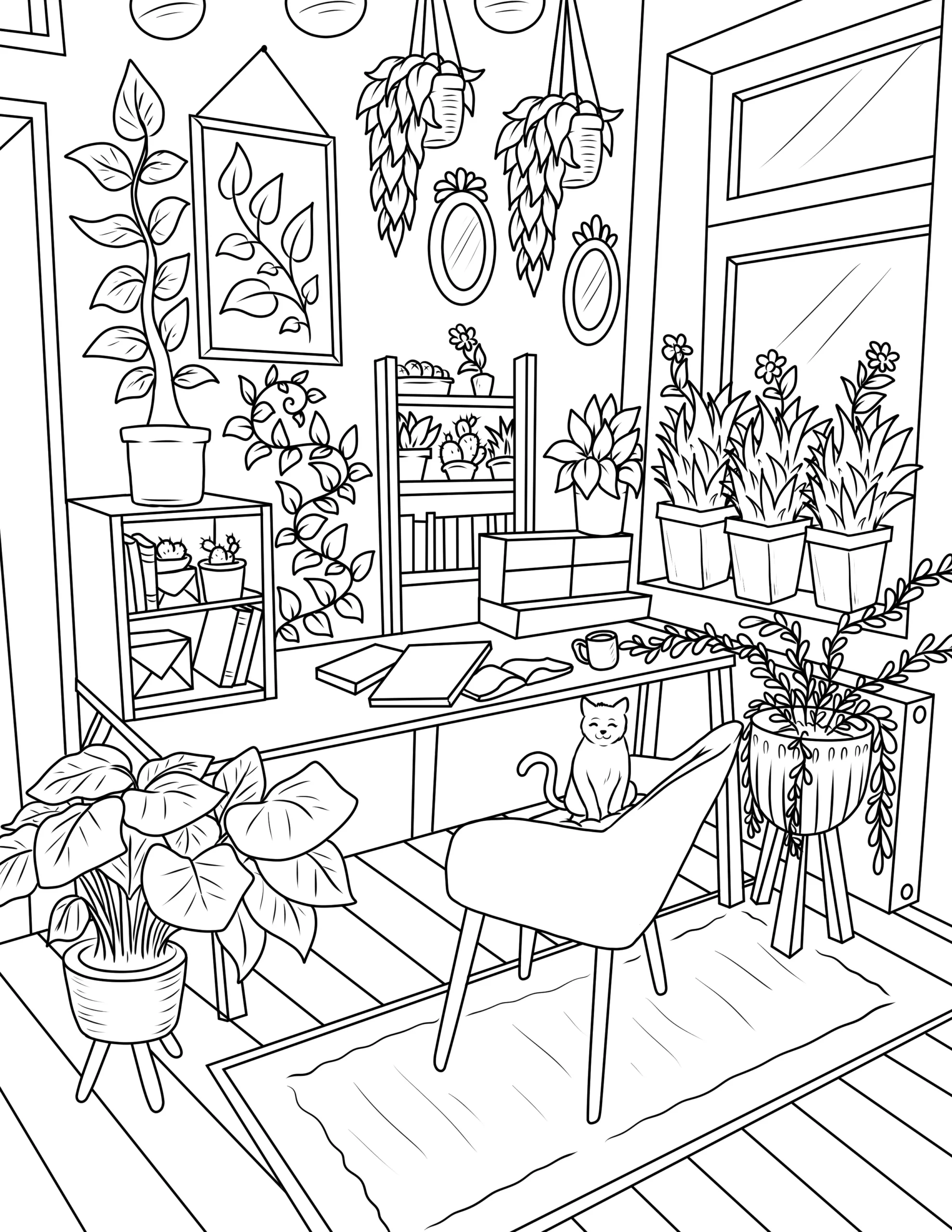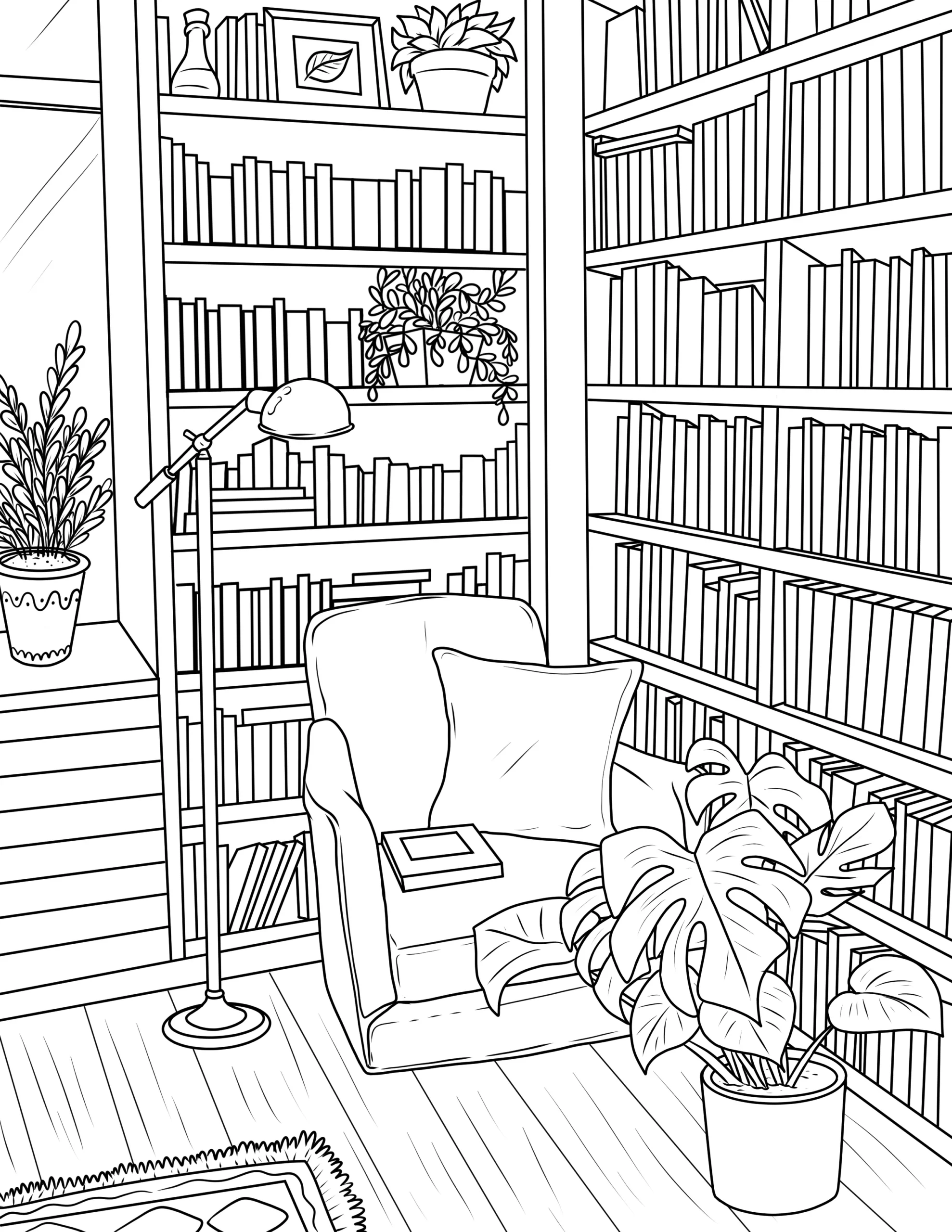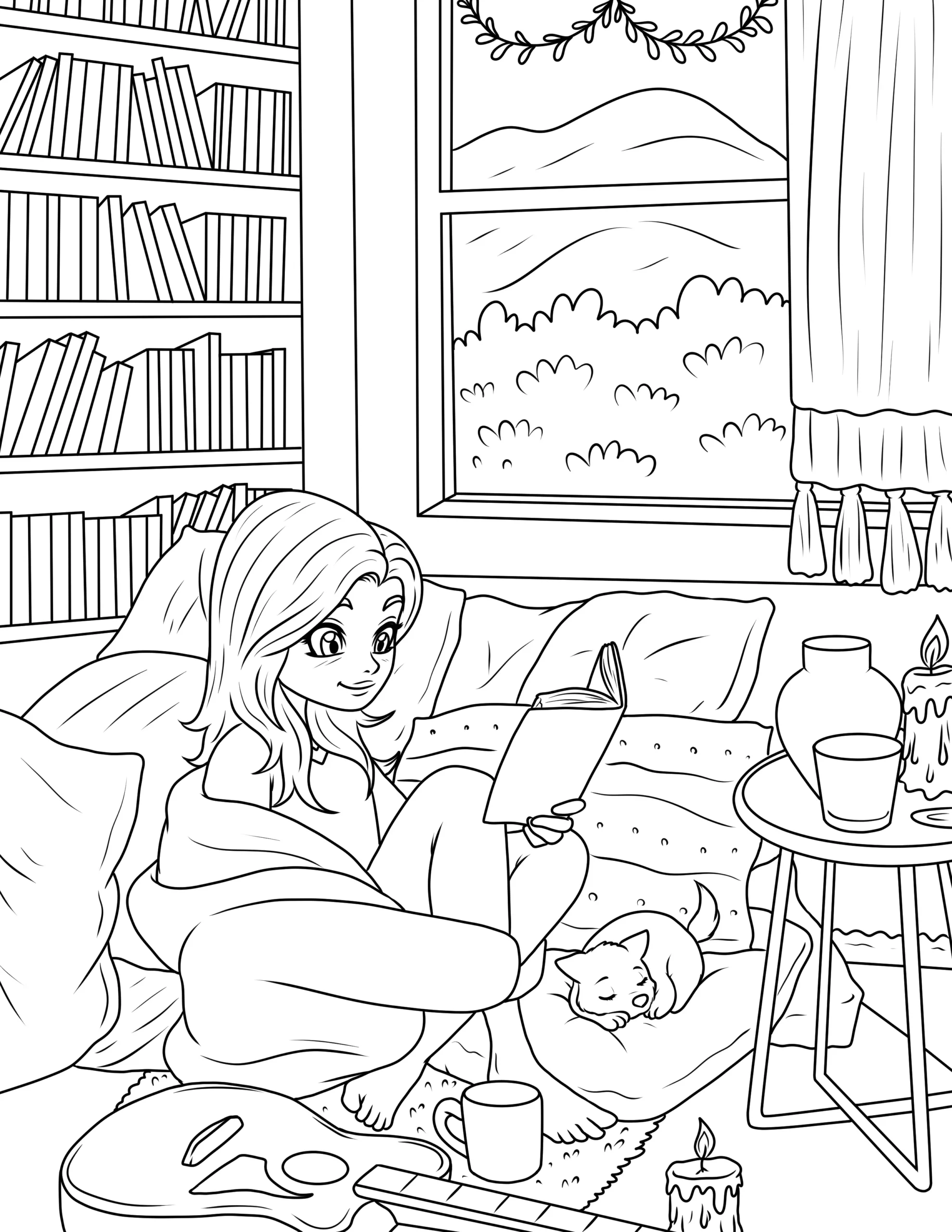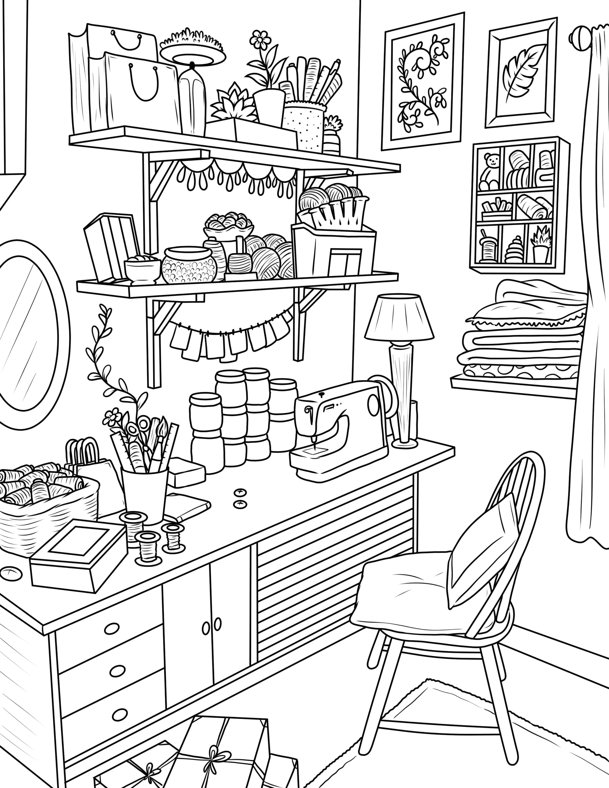 Free Cozy Spaces Coloring Pages – Printable Relaxing Room Designs