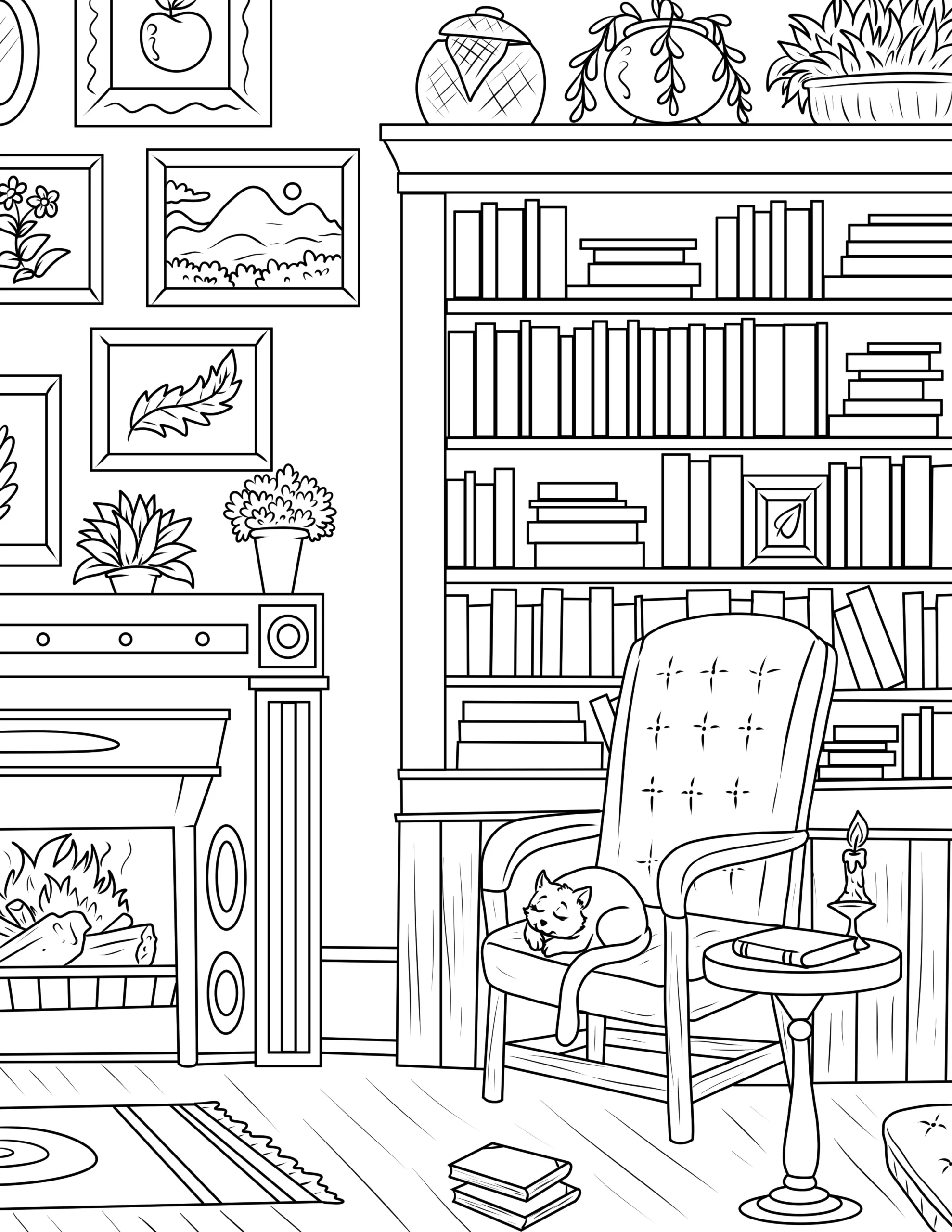 Discover beautiful free cozy spaces coloring pages designed for relaxation and creativity. These printable coloring sheets feature warm and inviting scenes like cozy bedrooms, reading corners, coffee nooks, candlelit rooms, and comfortable living spaces. Perfect for teens and adults who enjoy calm, aesthetic designs and stress-relief coloring. Download high-quality cozy coloring pages and enjoy peaceful creative time.