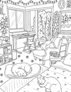 Free Cozy Room Coloring Pages – Relaxing Printable Designs