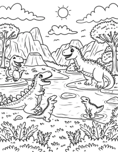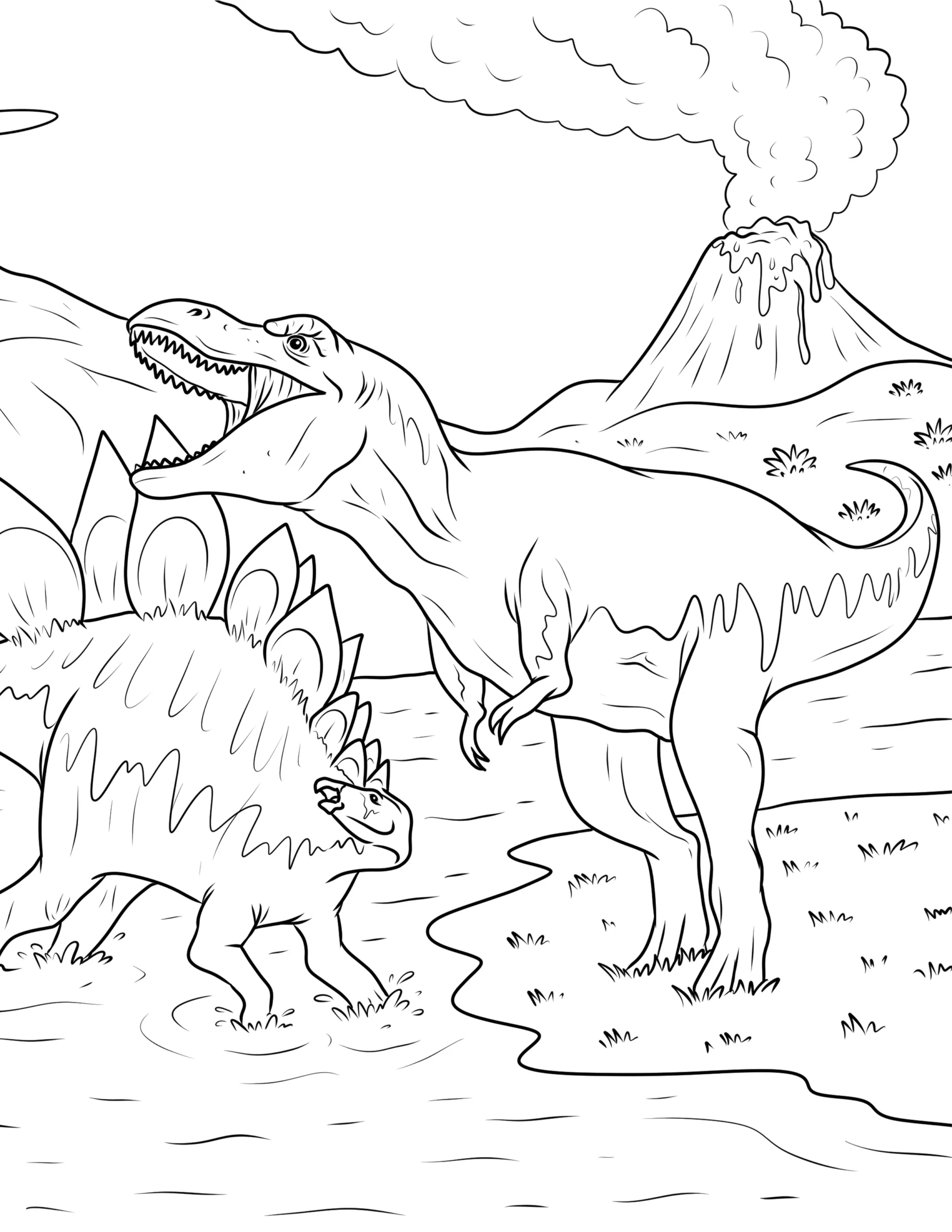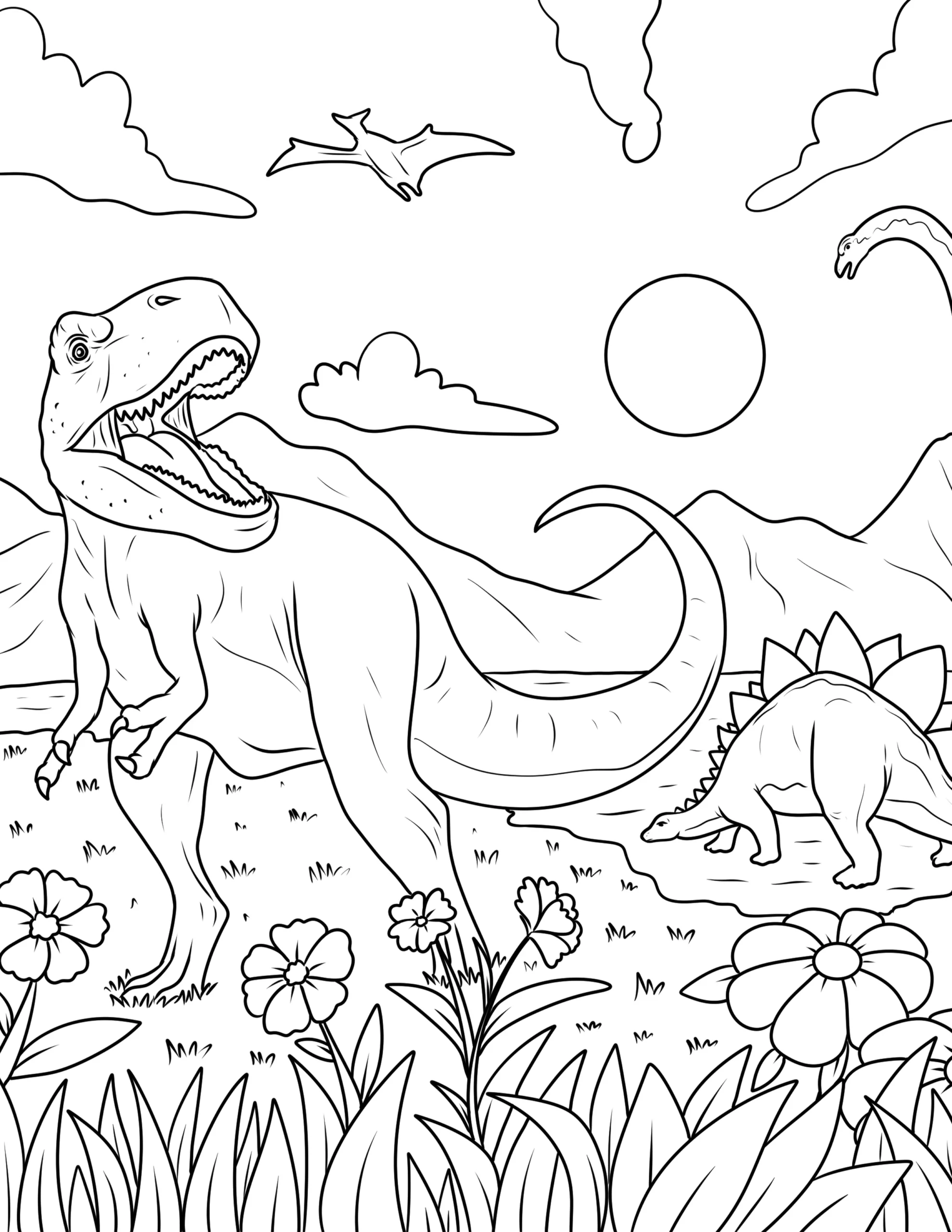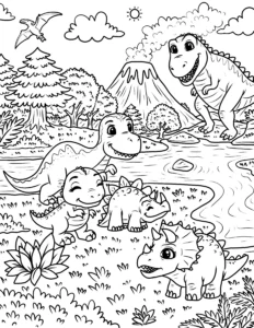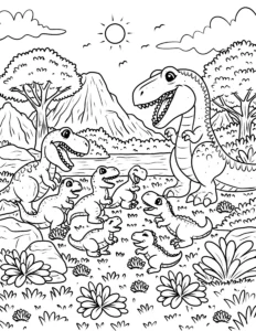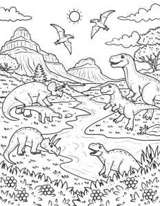 Explore our exciting collection of free dinosaur coloring pages! These printable dinosaur coloring sheets feature popular prehistoric creatures like T-Rex, Triceratops, Stegosaurus, and Velociraptors. Perfect for kids who love dinosaurs and creative activities. Download high-quality dinosaur printables and enjoy hours of fun coloring adventures with your favorite dinos.