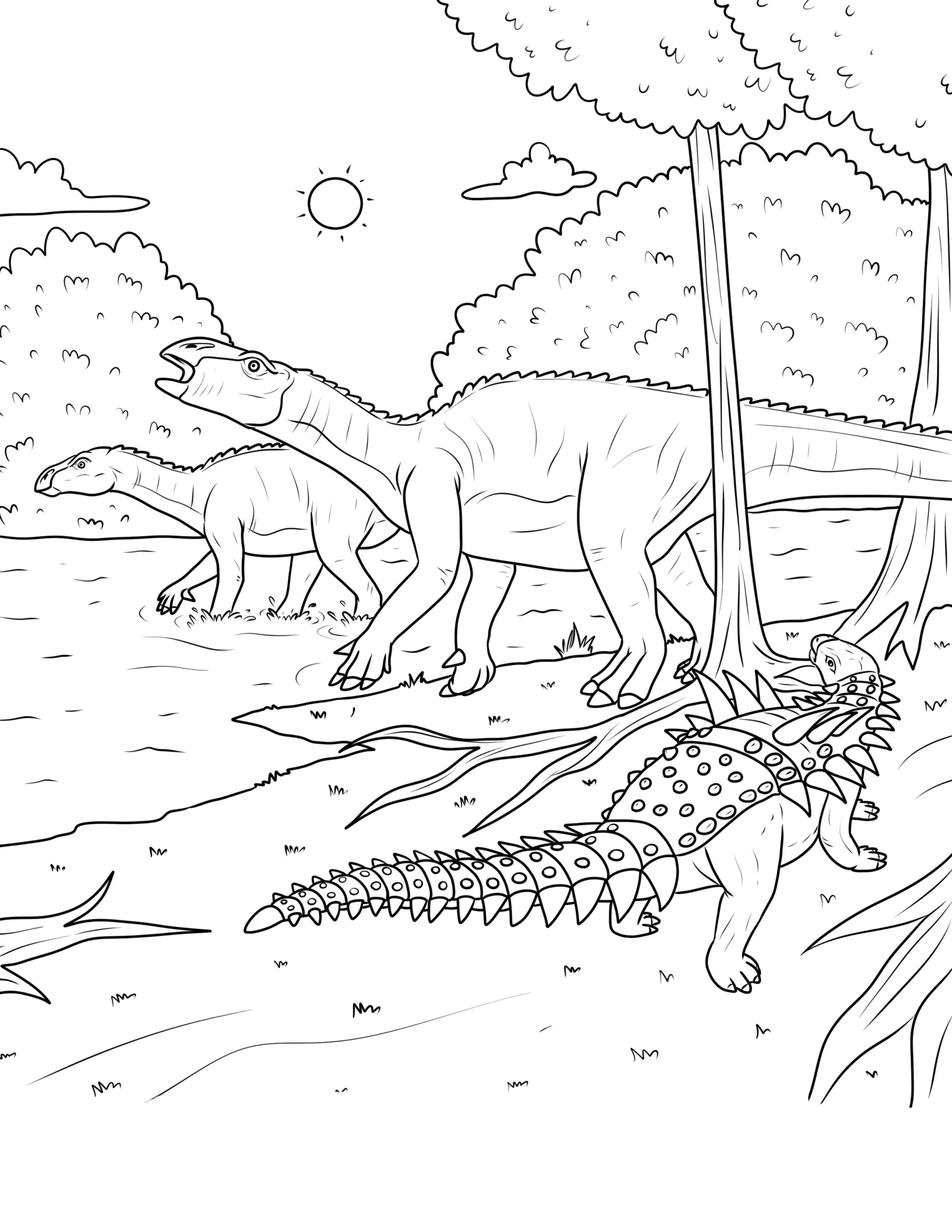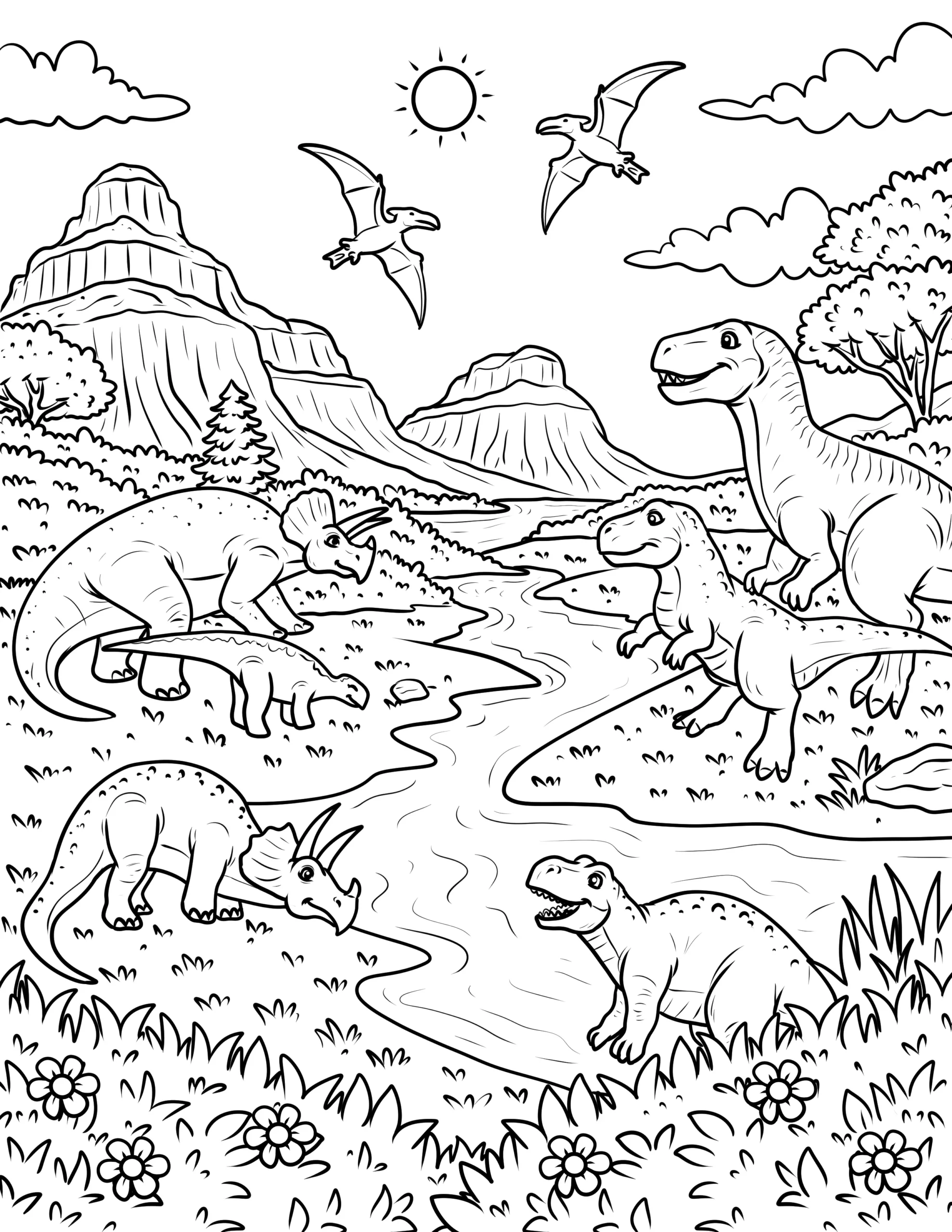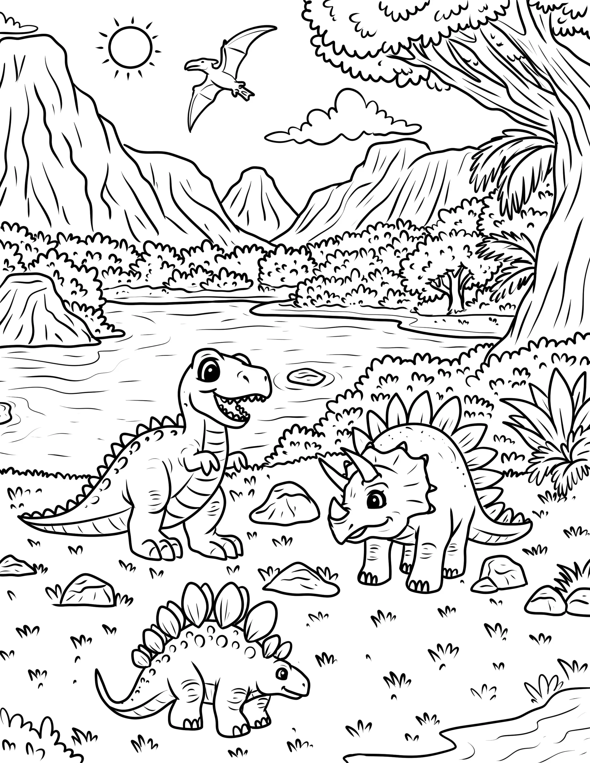 Explore our exciting collection of free dinosaur coloring pages! These printable dinosaur coloring sheets feature popular prehistoric creatures like T-Rex, Triceratops, Stegosaurus, and Velociraptors. Perfect for kids who love dinosaurs and creative activities. Download high-quality dinosaur printables and enjoy hours of fun coloring adventures with your favorite dinos.