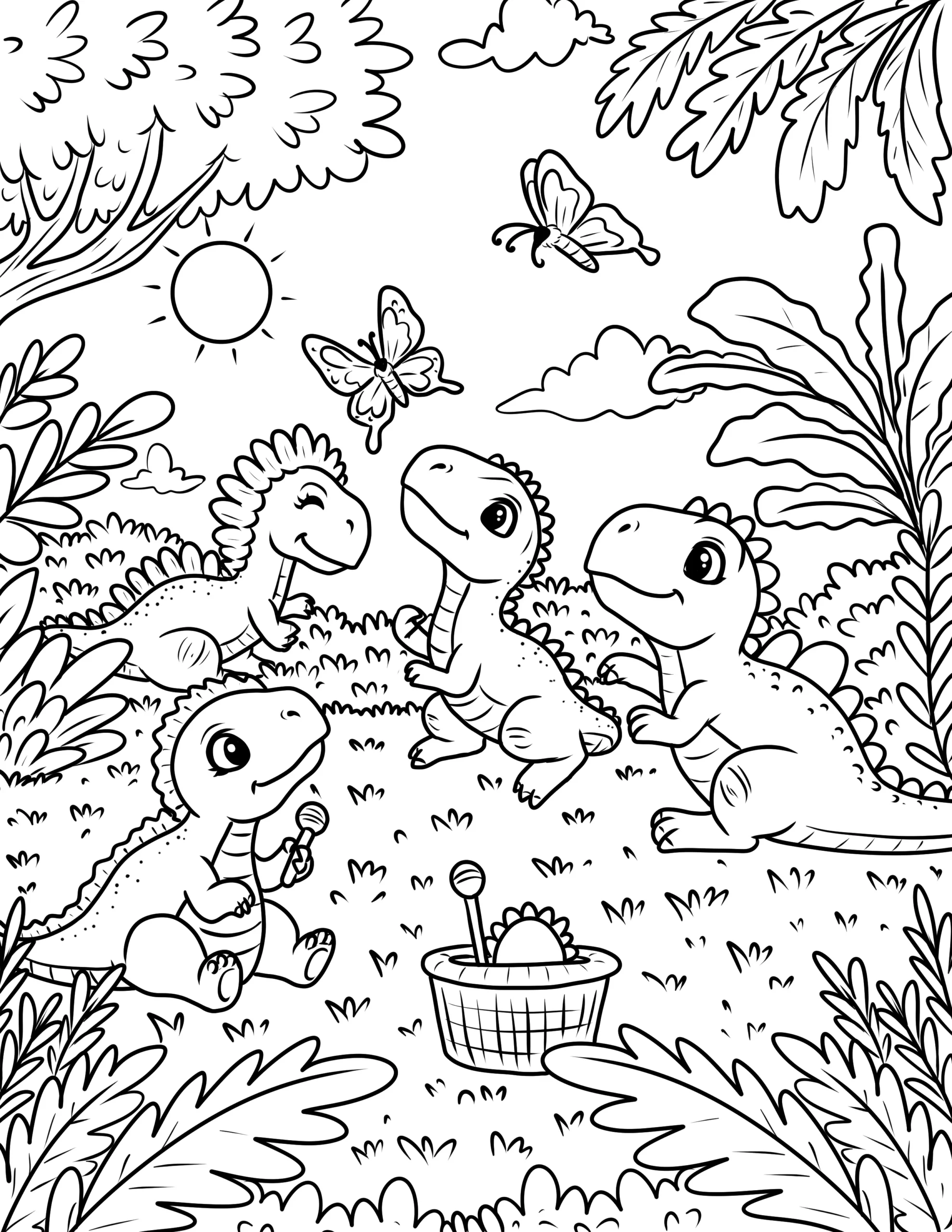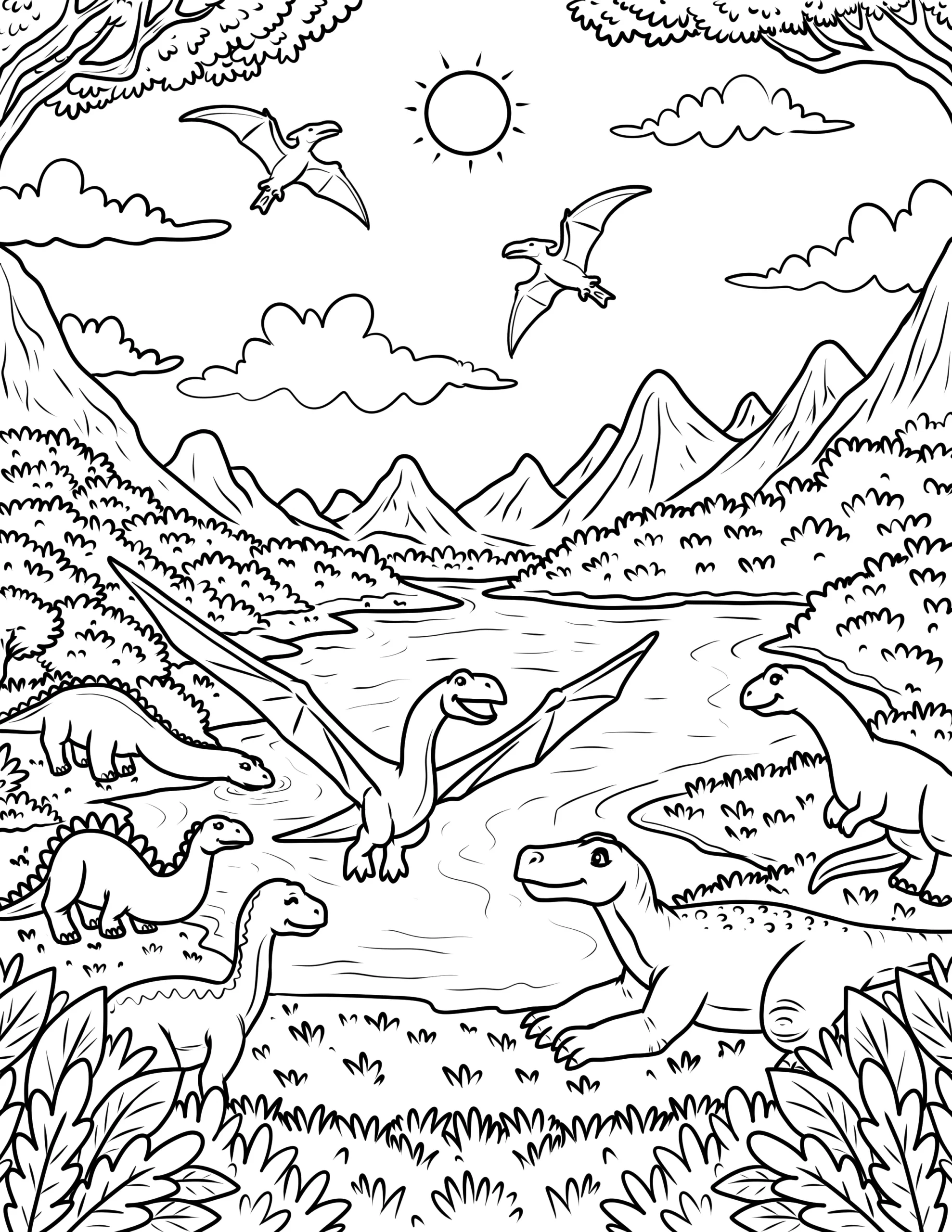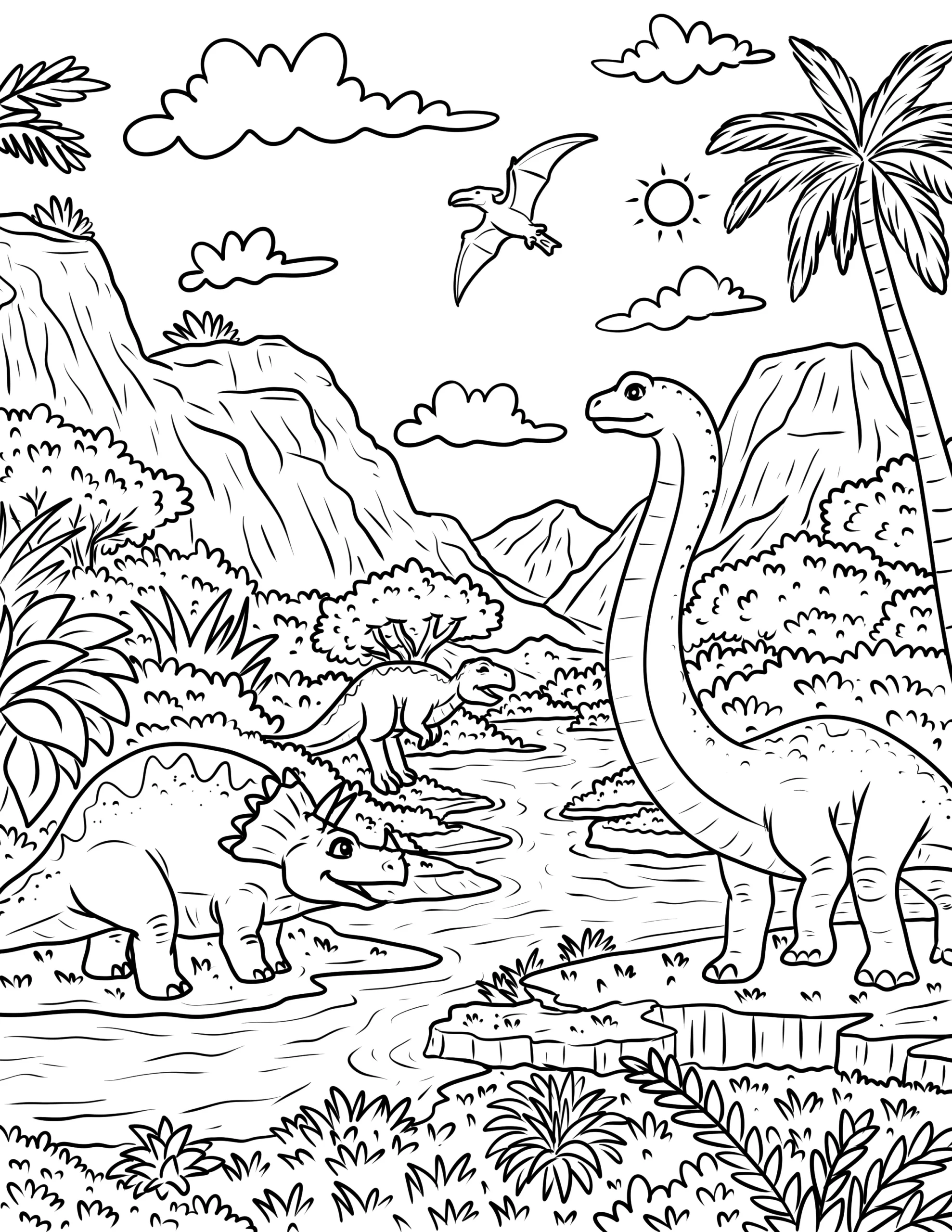 This is a captivating collection of printable coloring sheets featuring a variety of dinosaur designs. From the towering Tyrannosaurus Rex and the gentle Brachiosaurus to the spiky Stegosaurus and the swift Velociraptor, these pages bring the prehistoric world to life. The illustrations range from simple, easy-to-color outlines for younger children to more detailed and intricate designs for older kids and adults. Perfect for sparking curiosity about ancient creatures, these coloring pages provide an educational and entertaining activity. Whether for a classroom project, a themed party, or a fun activity at home, these dinosaur coloring pages offer endless enjoyment and a creative way to explore the fascinating world of dinosaurs.