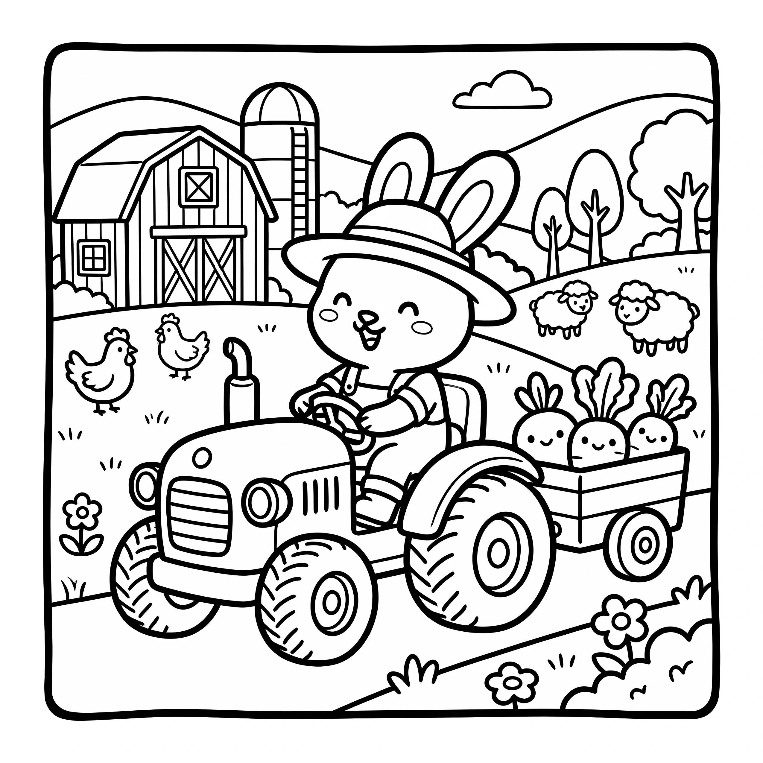 Enjoy adorable and hilarious free funny bunny coloring pages! Discover cute rabbits in silly and playful moments like eating too many carrots, dancing, tripping, playing tricks, and getting into funny situations. These printable bunny coloring sheets are perfect for kids, teens, and adults who love cute animals and lighthearted fun. Download high-quality PDF coloring pages and bring these funny bunny moments to life!