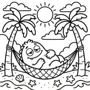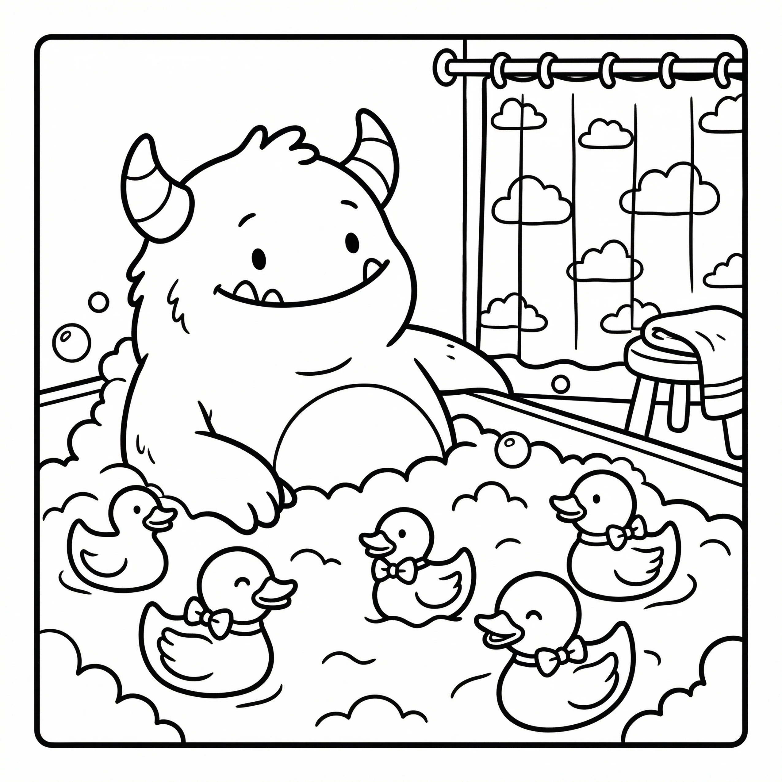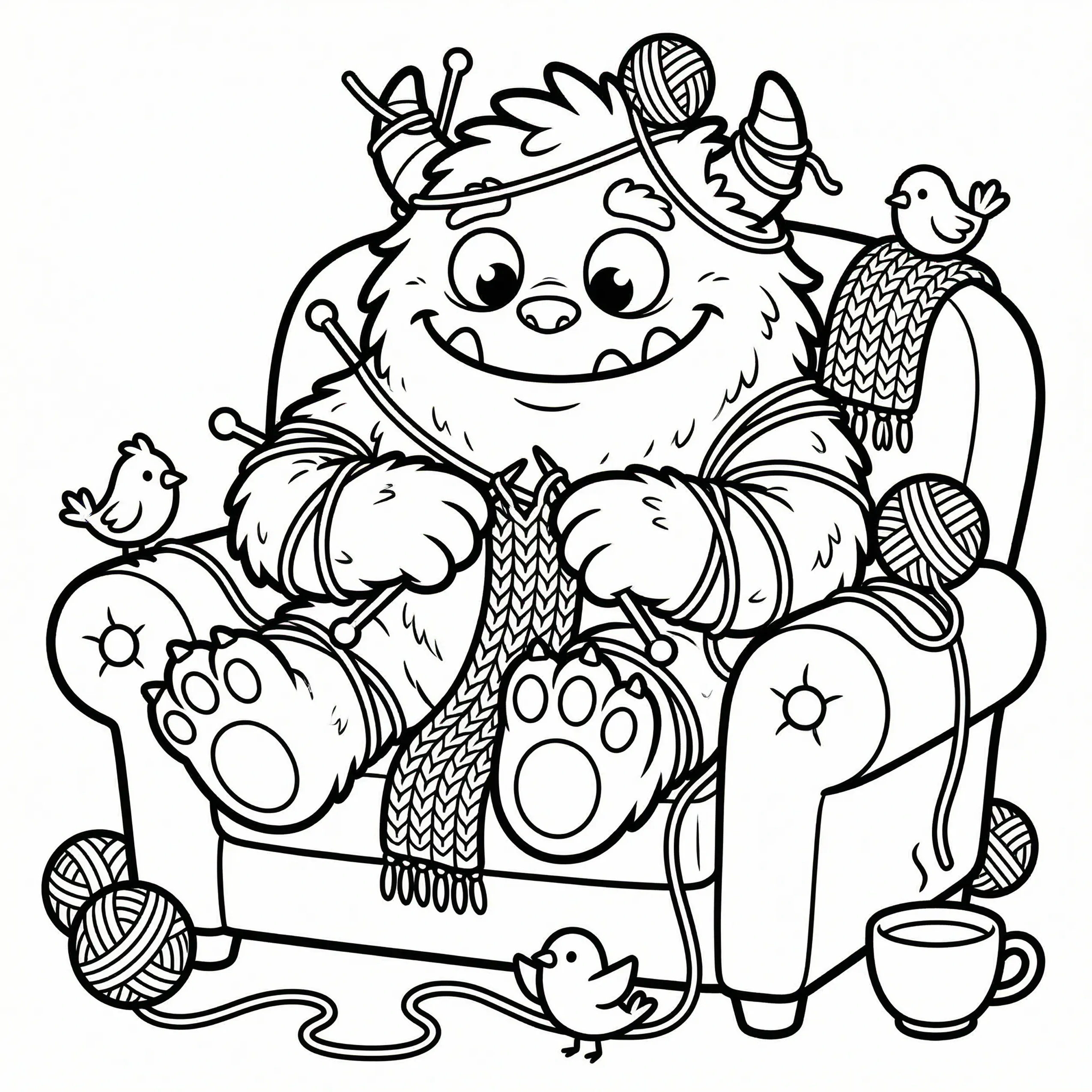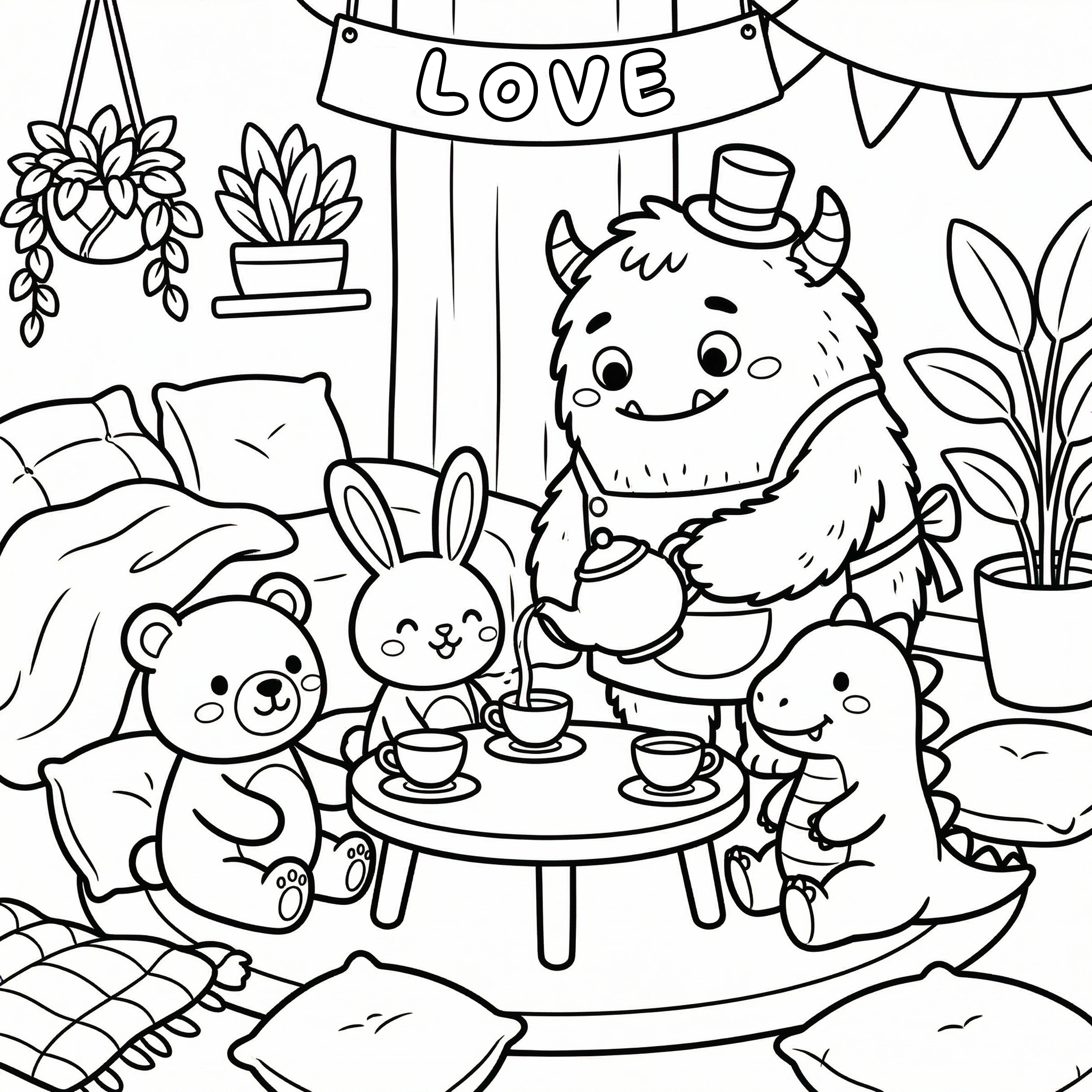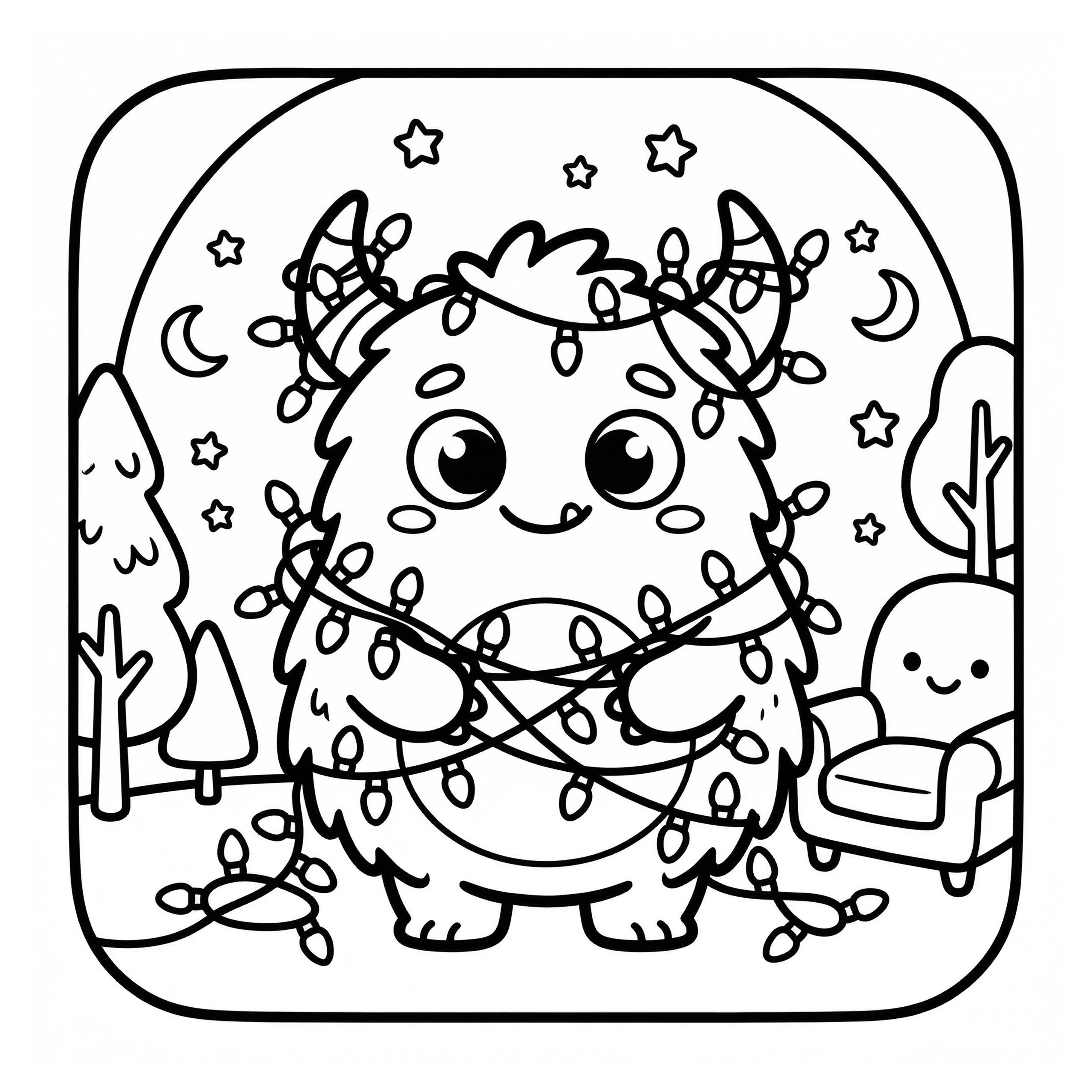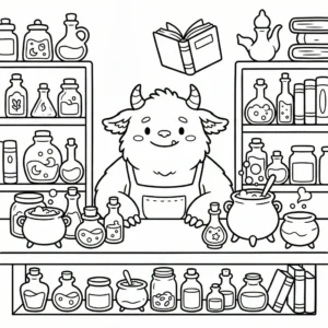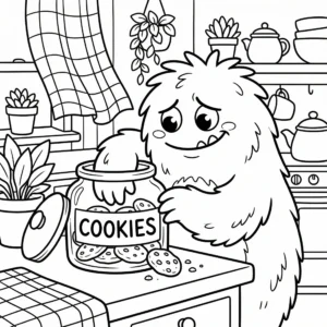 Little Monster Cozy Corners Coloring Pages, Simple & Bold Designs of Cute Monsters in Sweet, Funny, and Peaceful Places