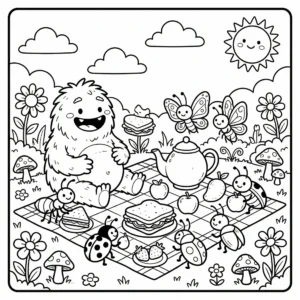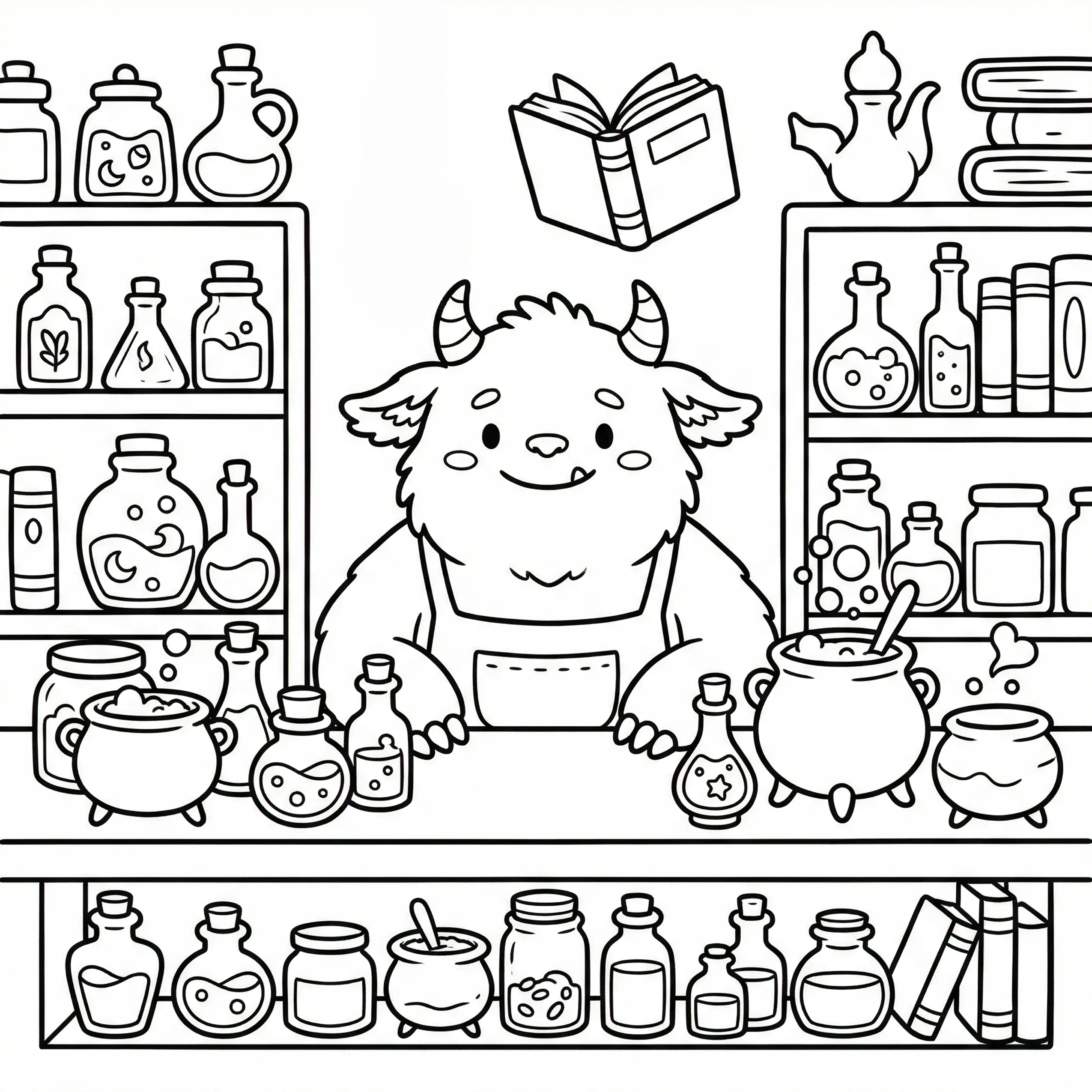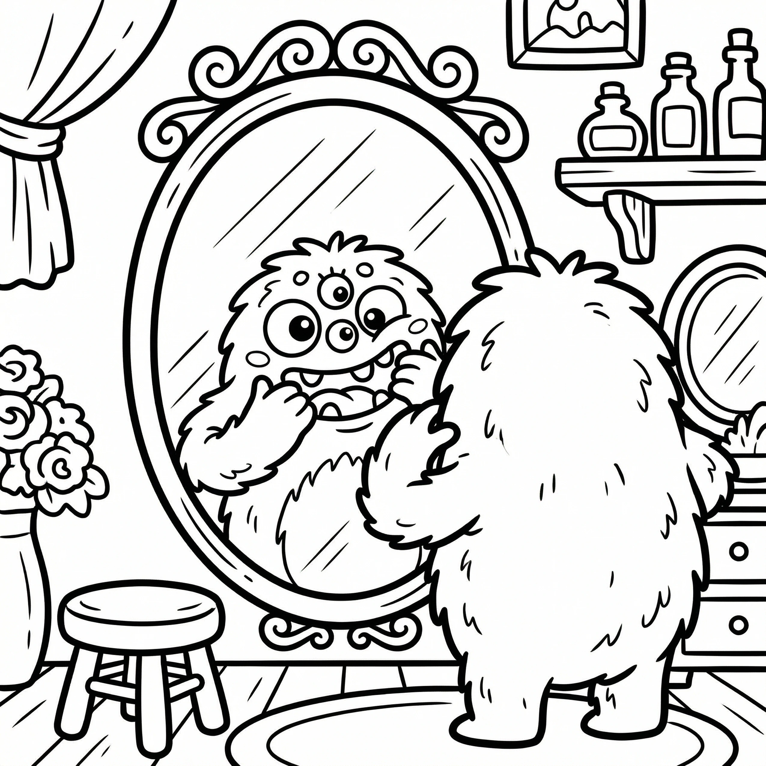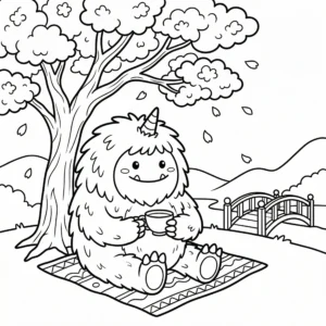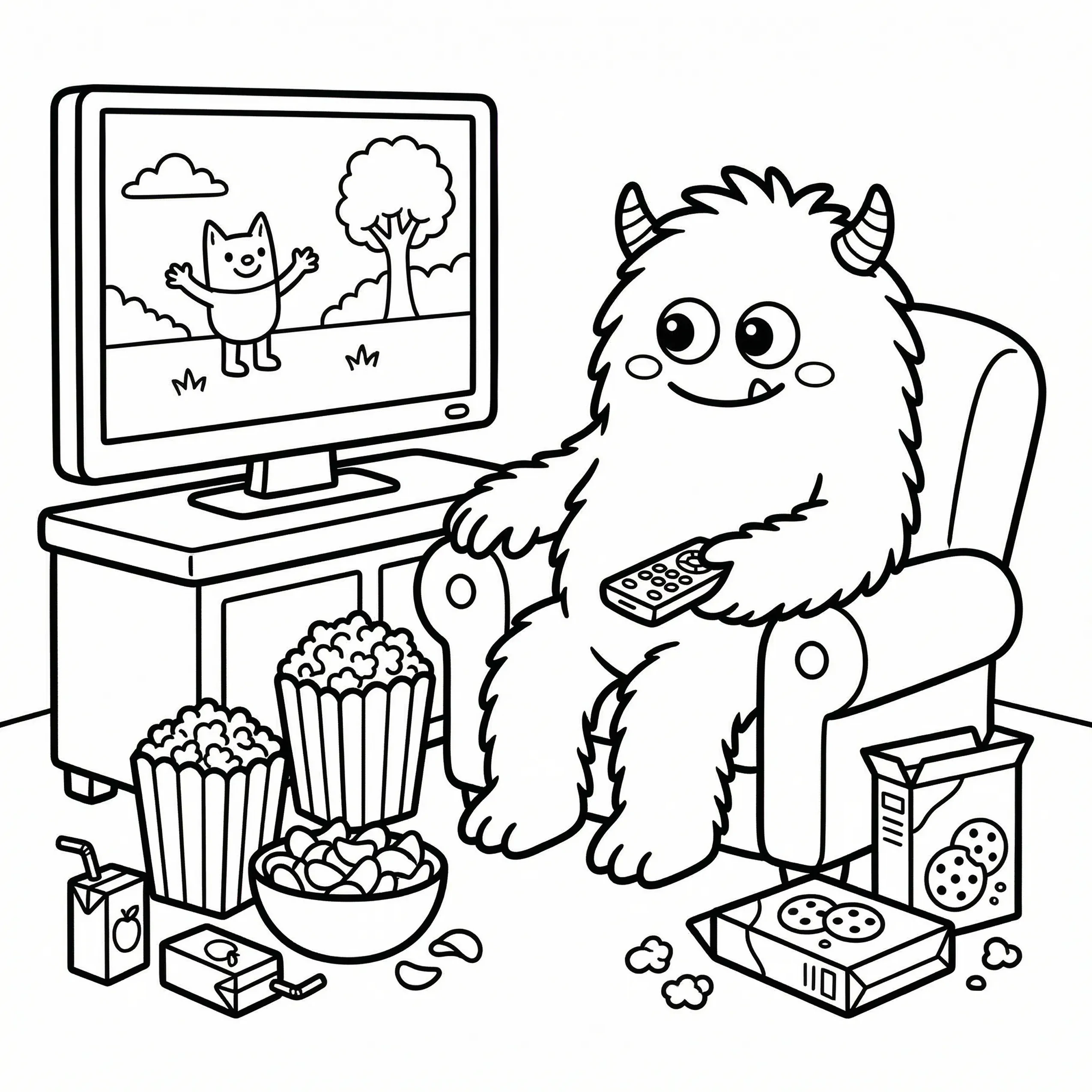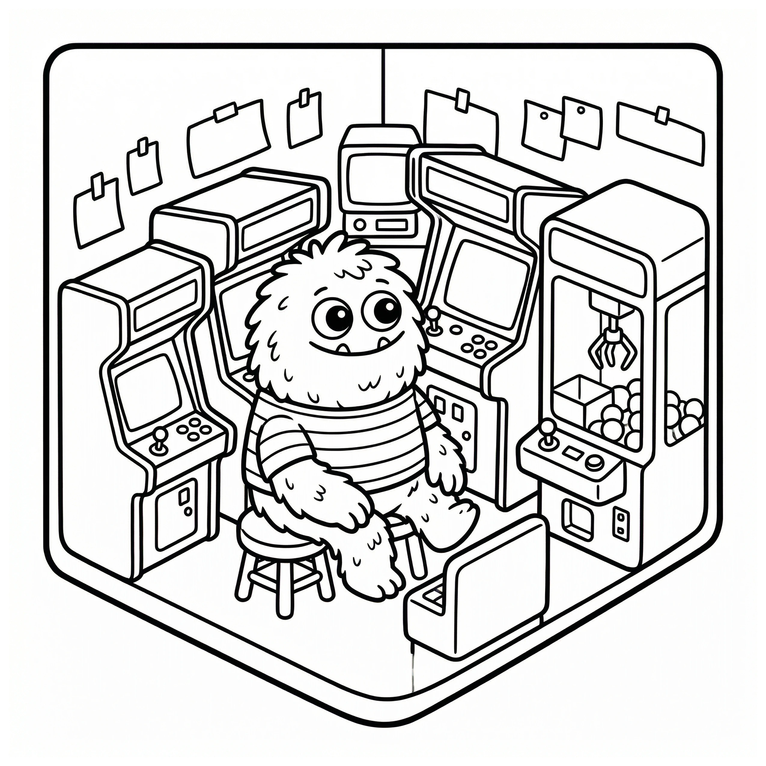 Little Monster Cozy Corners Coloring Pages, Simple & Bold Designs of Cute Monsters in Sweet, Funny, and Peaceful Places