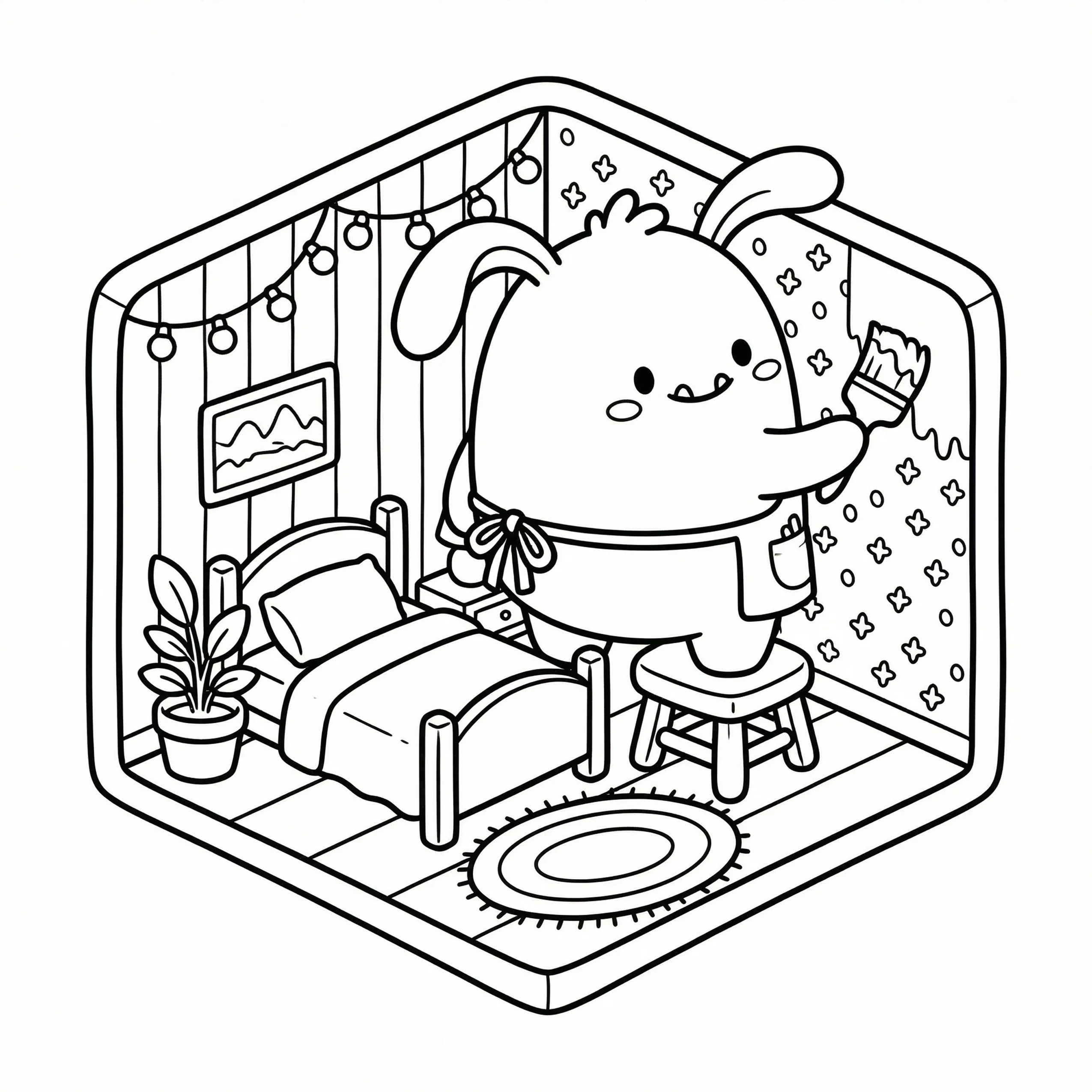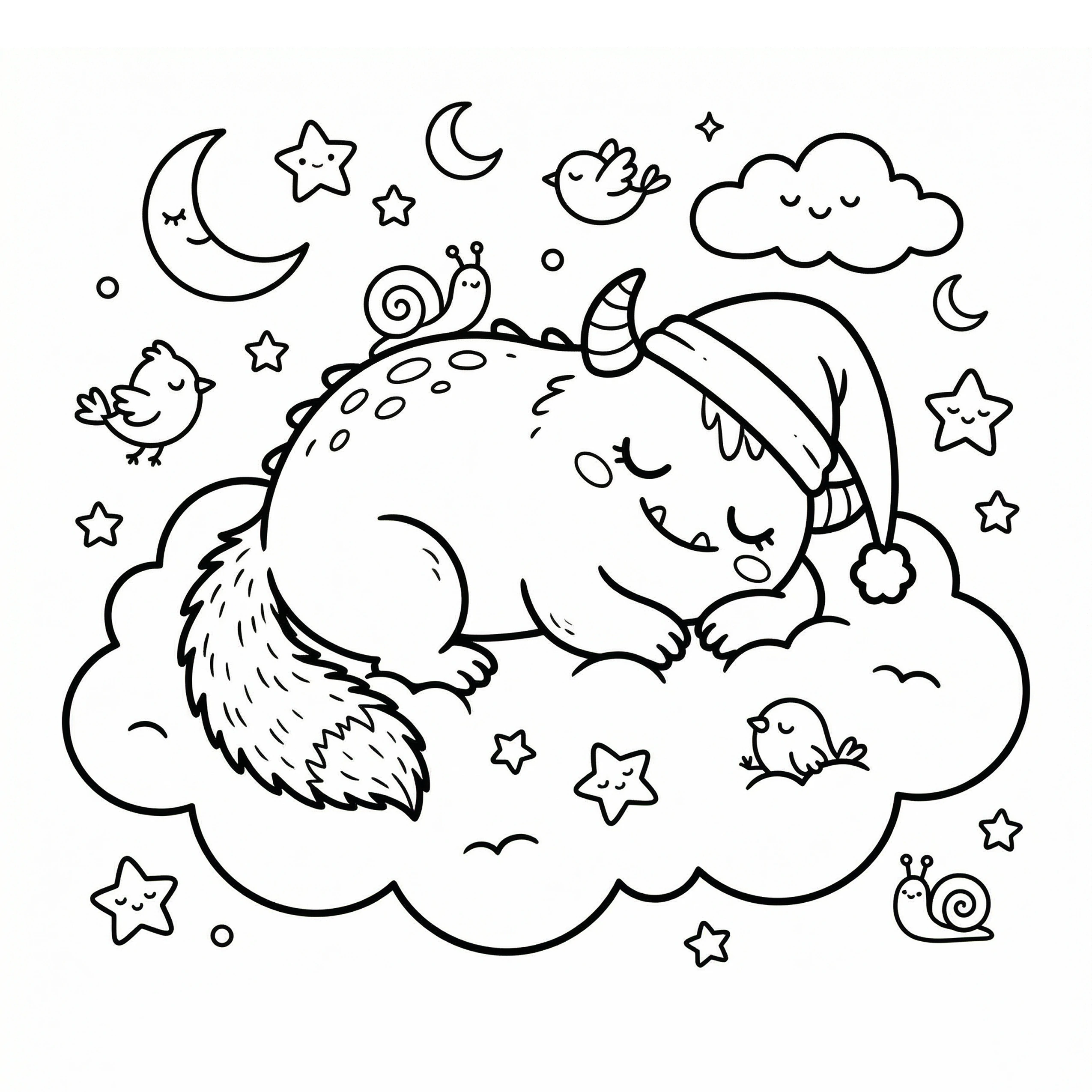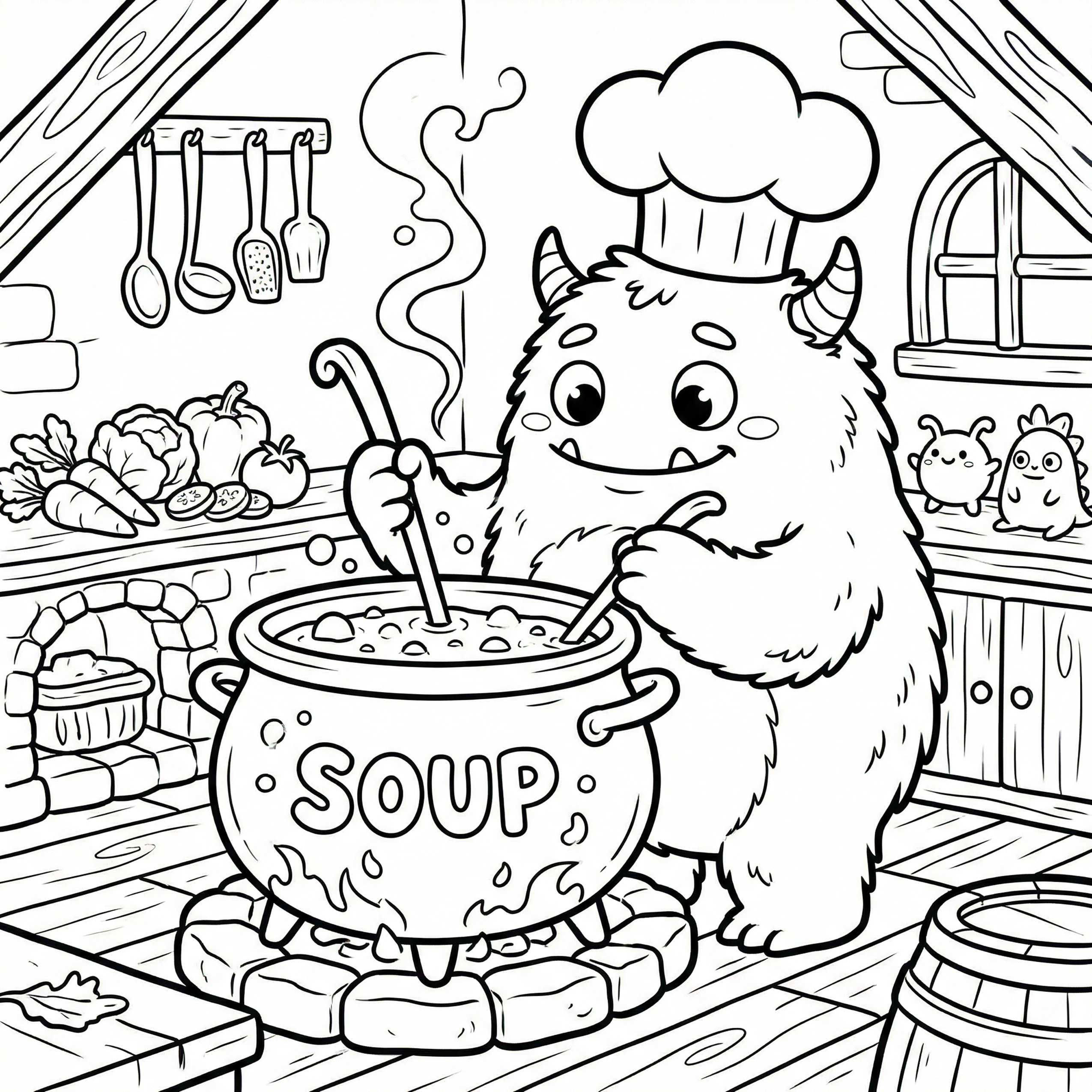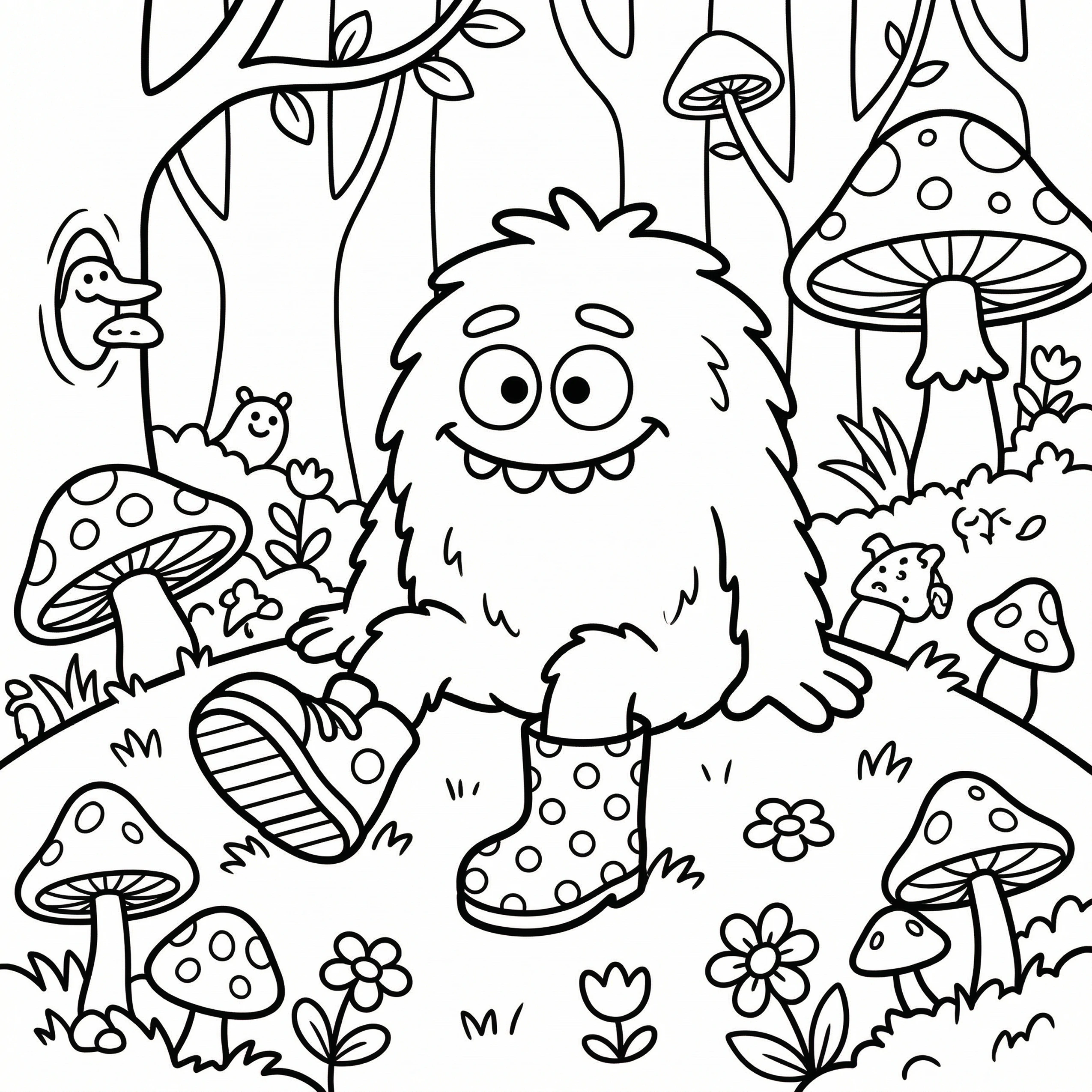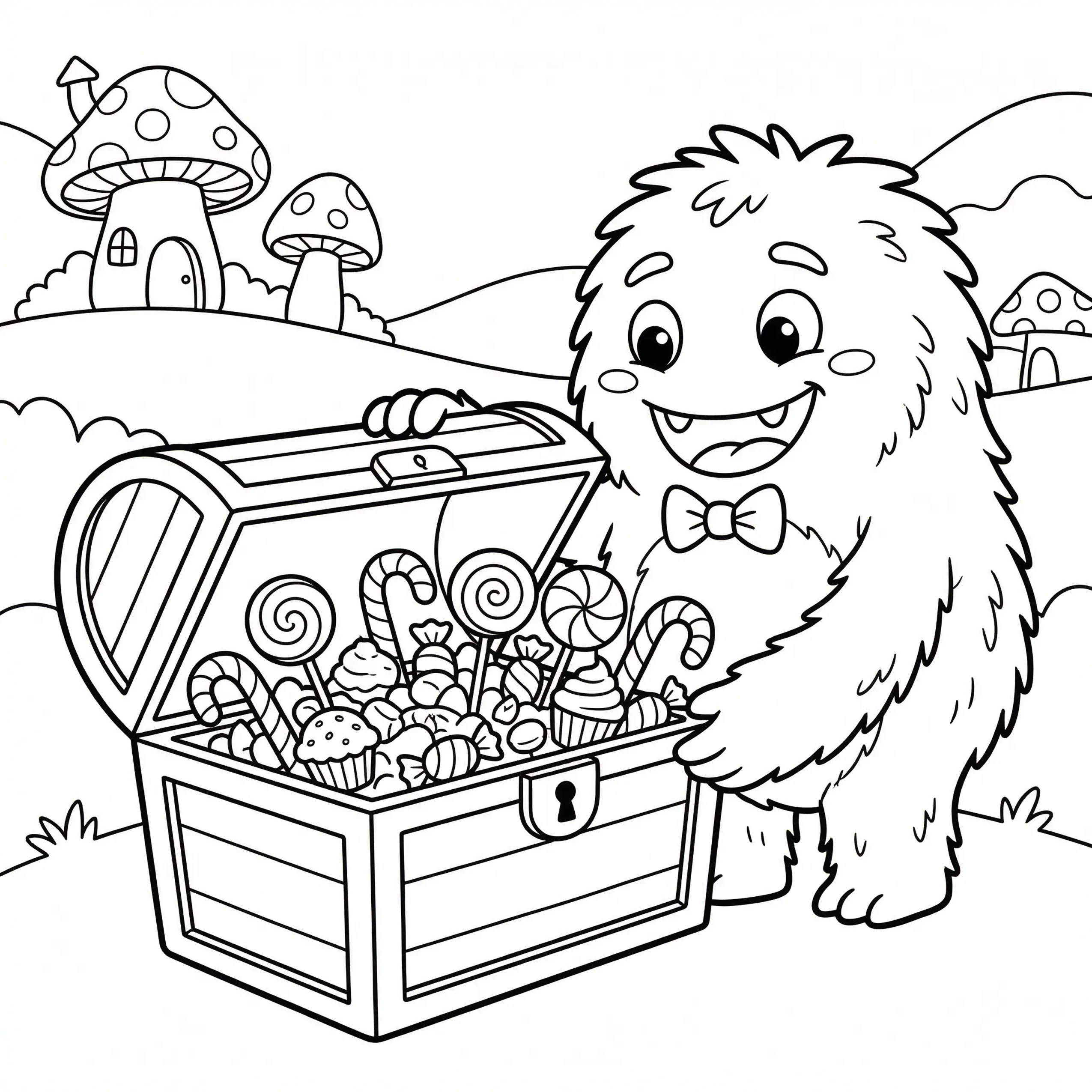 Little Monster Cozy Corners Coloring Pages, Simple & Bold Designs of Cute Monsters in Sweet, Funny, and Peaceful Places