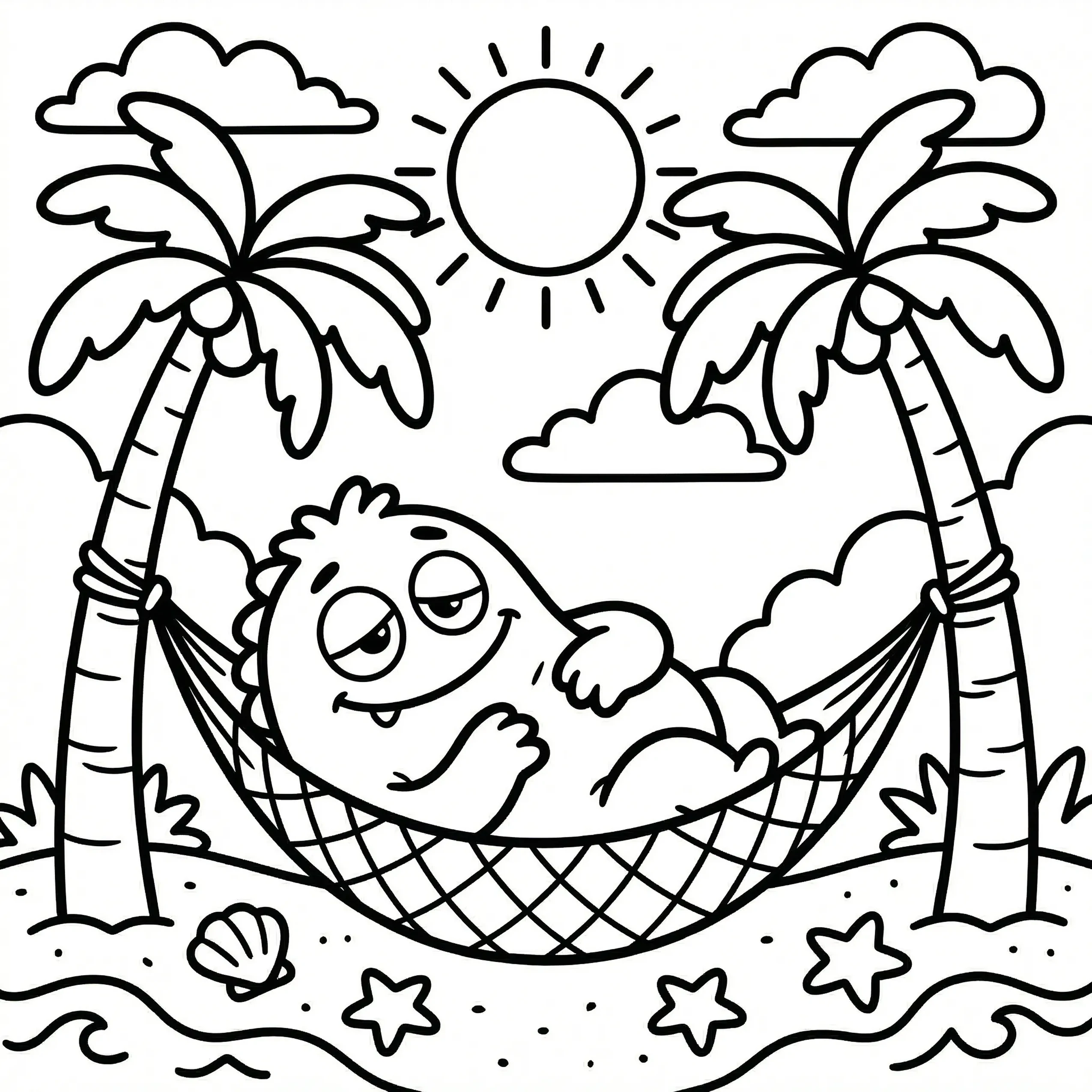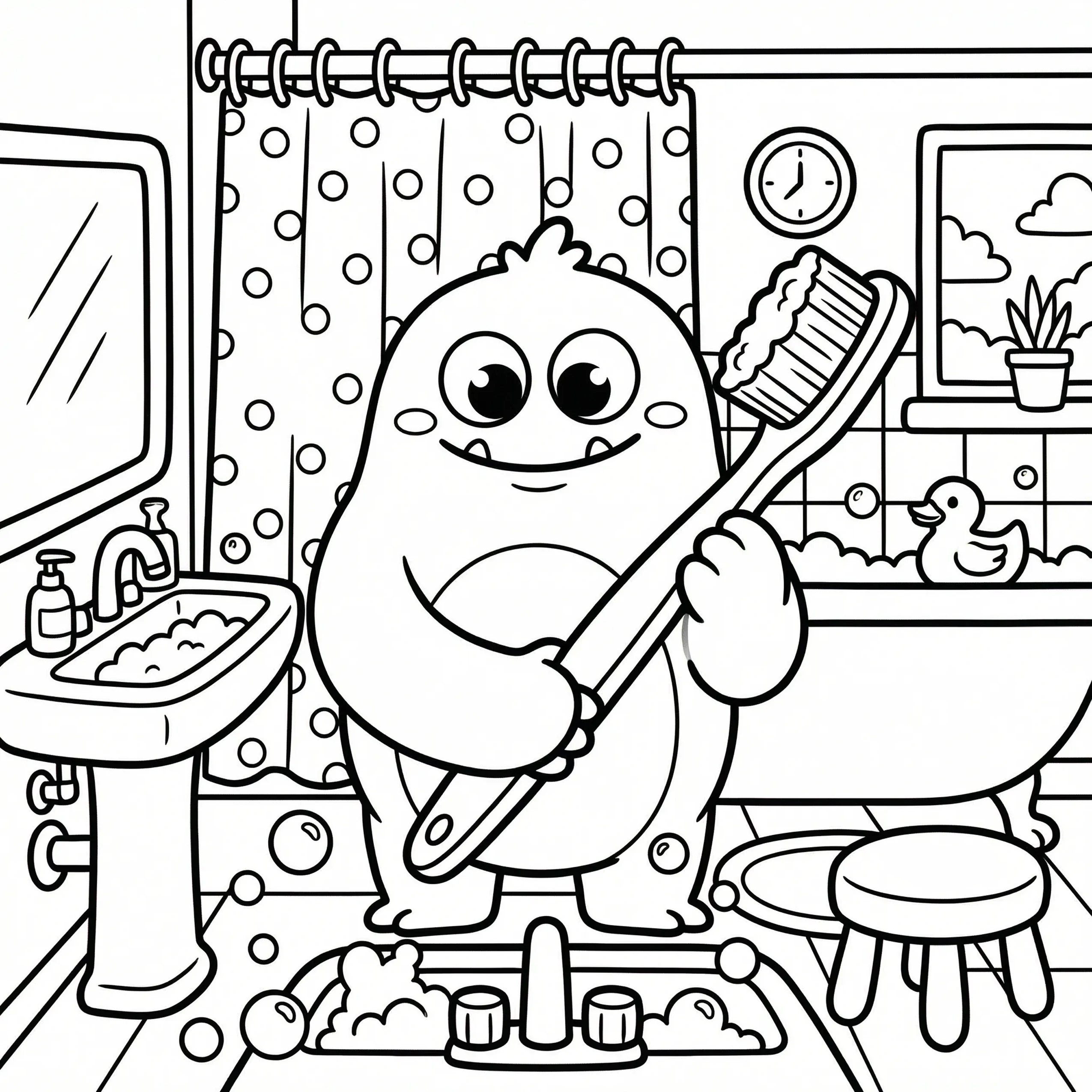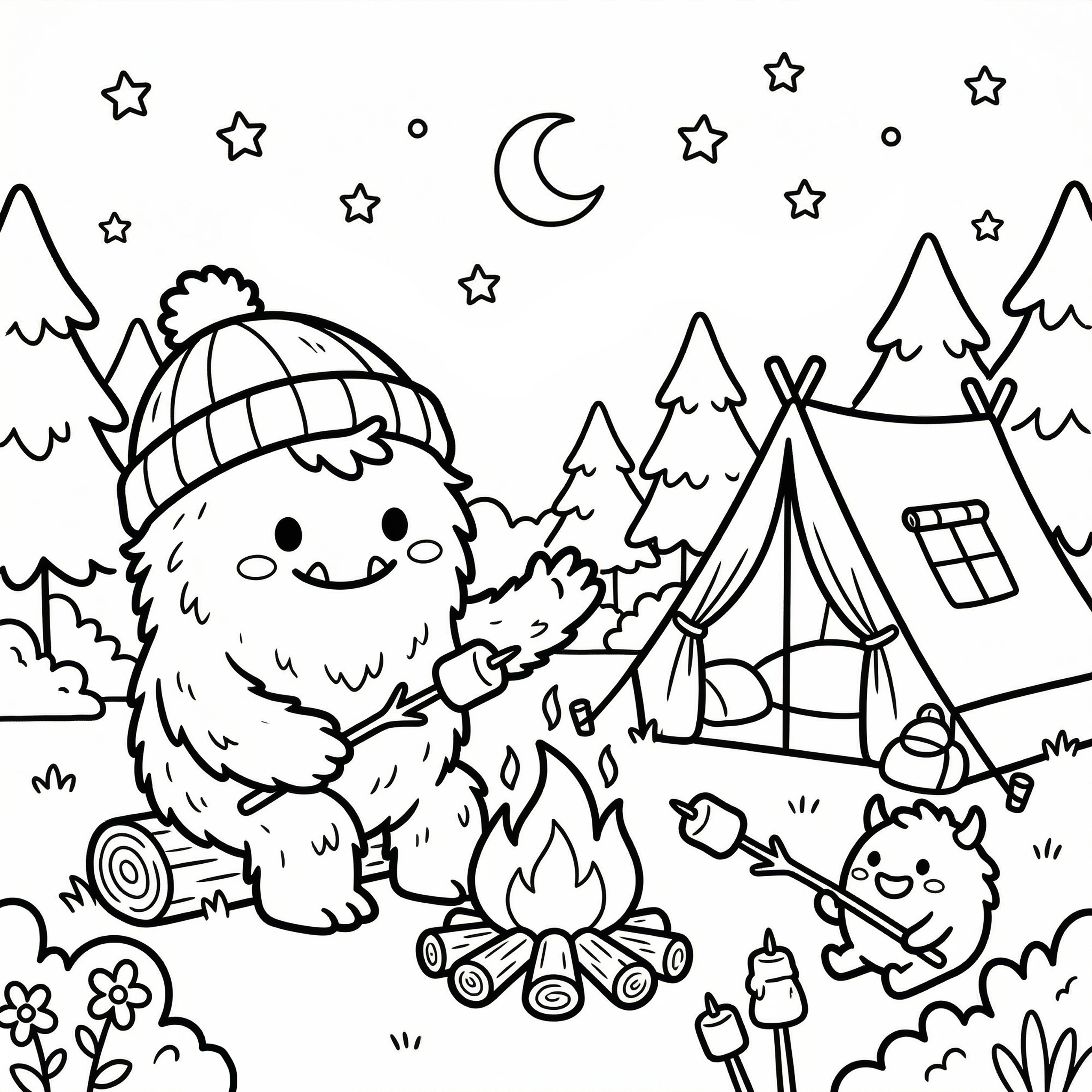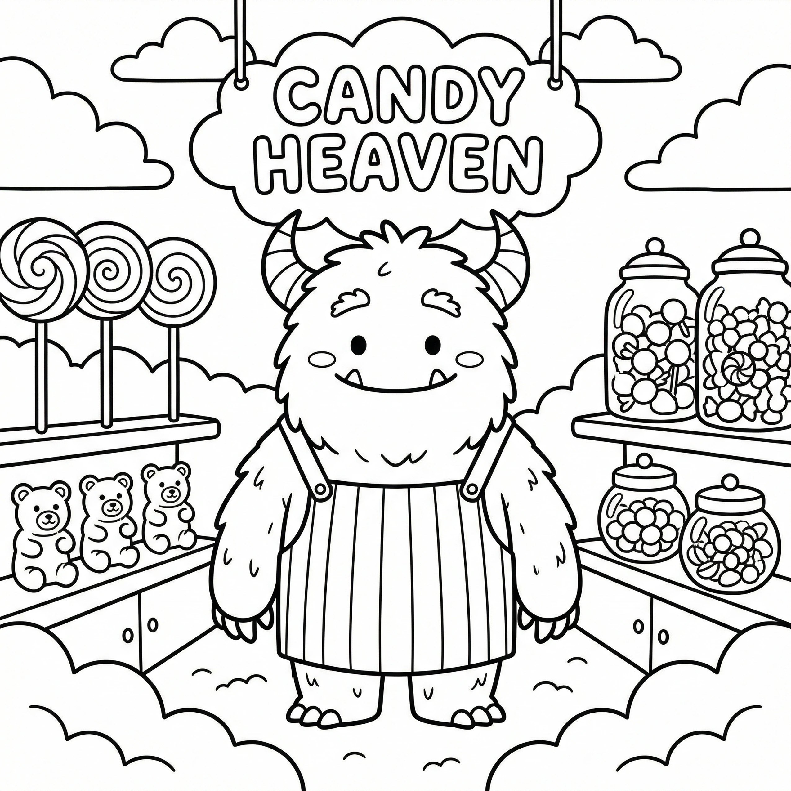 Little Monster Cozy Corners Coloring Pages, Simple & Bold Designs of Cute Monsters in Sweet, Funny, and Peaceful Places