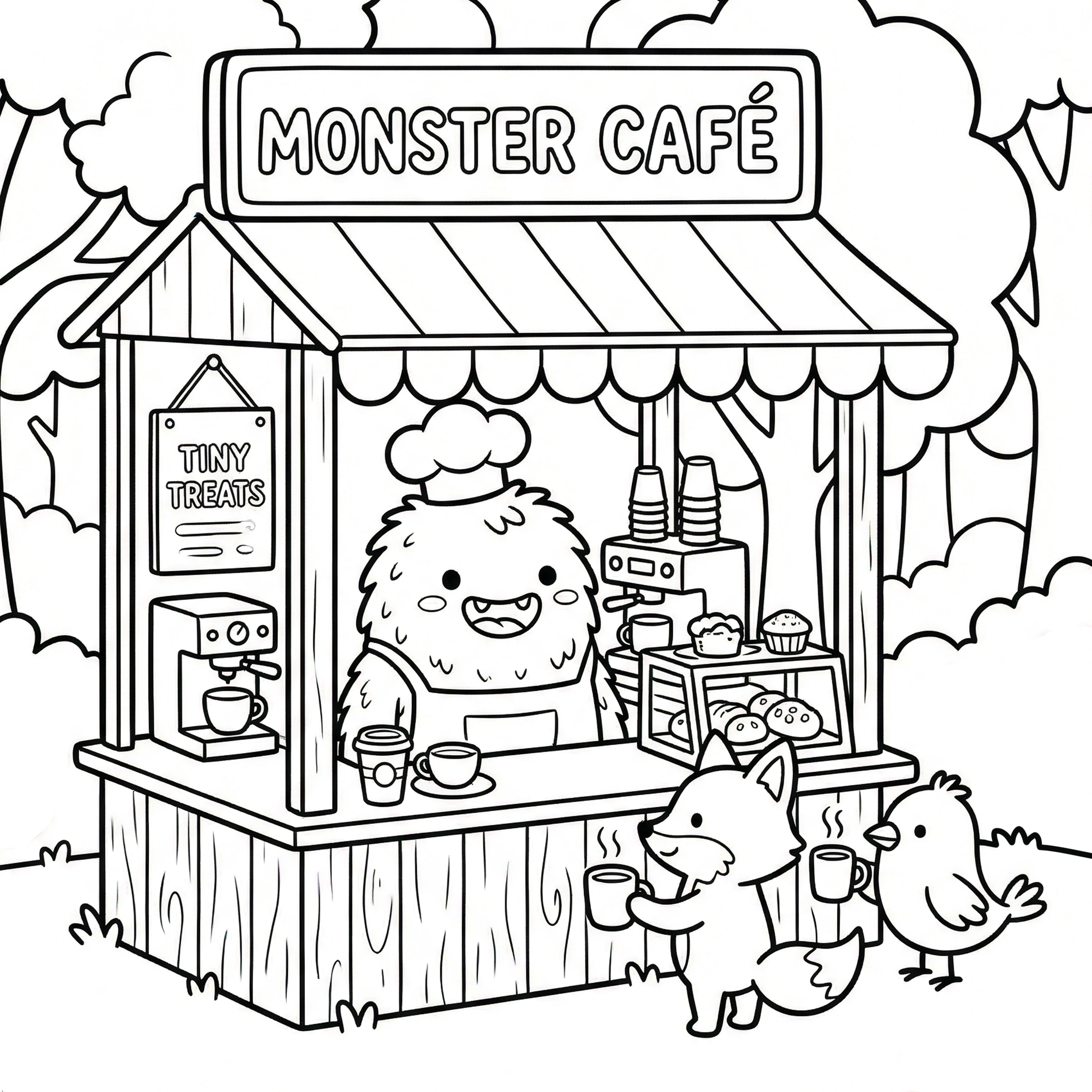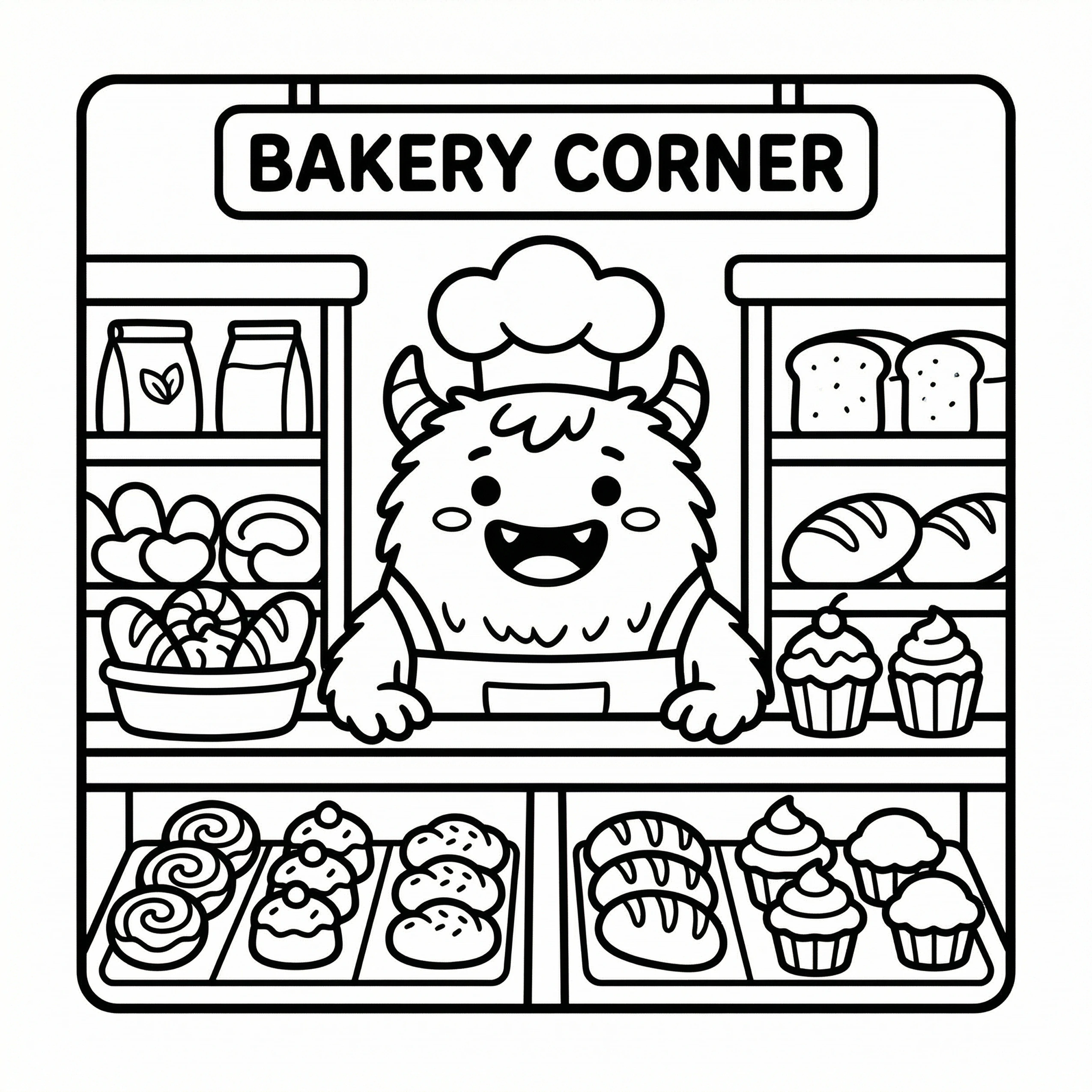 Cute Monster Corner Coloring Pages for Adults & Teens Bold and Easy Kawaii Designs with Cozy Spaces, Funny Moments & Adorable Creatures